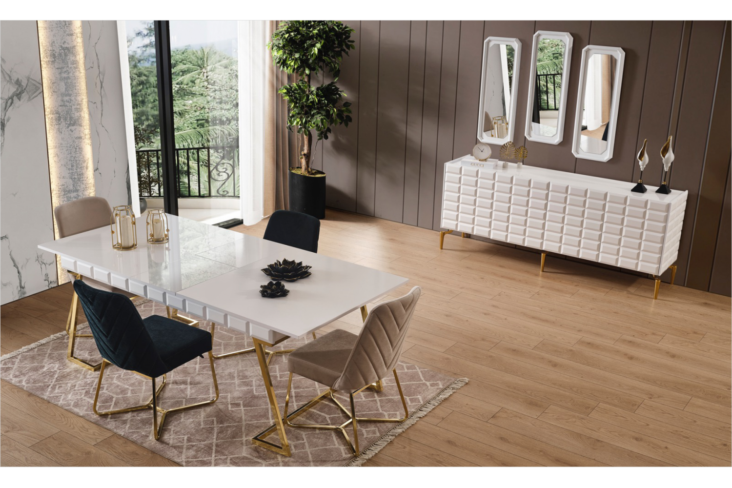 Takım İçeriği 1 adet masa + 4 adet sandalye + 1 adet Tv Ünitesi  dan oluşmaktadır. İsteğe bağlı Konsol ekleyebilirsiniz .
