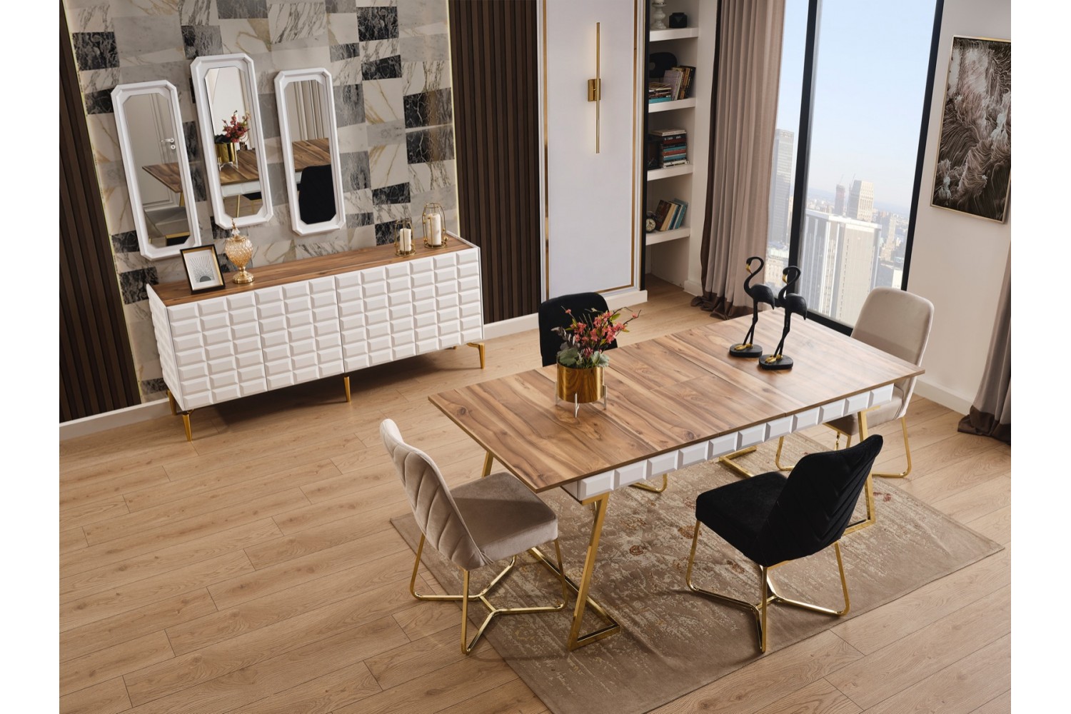 Takım İçeriği 1 adet masa + 4 adet sandalye + 1 adet Tv Ünitesi  dan oluşmaktadır. İsteğe bağlı Konsol ekleyebilirsiniz .