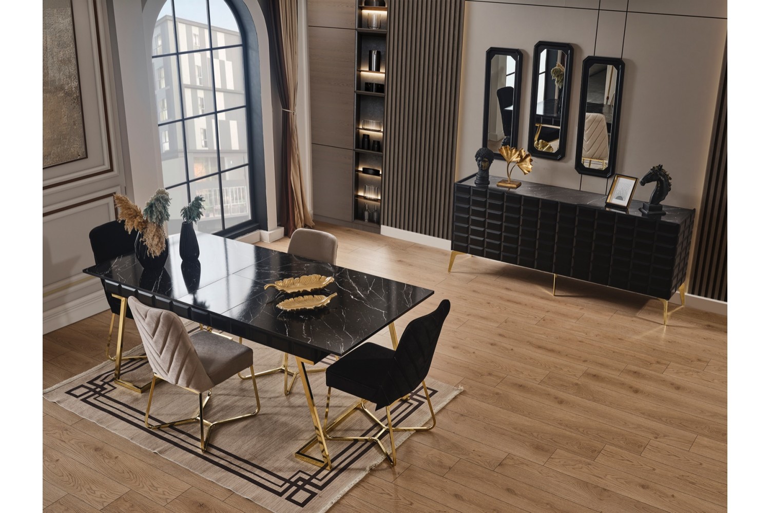 Takım İçeriği 1 adet masa + 4 adet sandalye + 1 adet Tv Ünitesi  dan oluşmaktadır. İsteğe bağlı Konsol ekleyebilirsiniz .