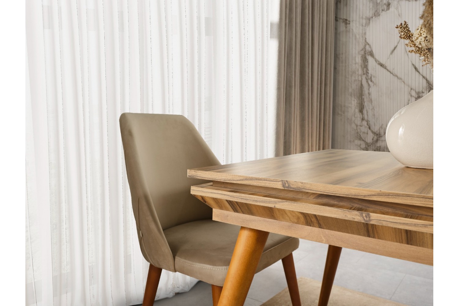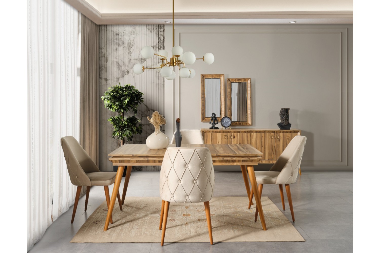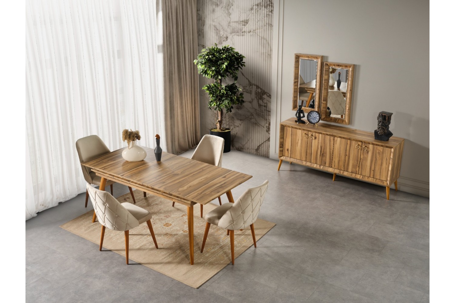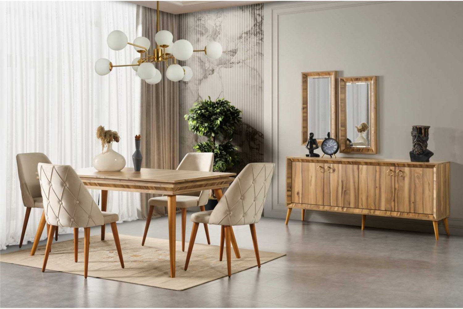 Takım İçeriği 1 adet masa + 4 adet sandalye + 1 adet konsol^dan oluşmaktdır. İsteğe bağlı  Tv Ünitesi seçebilirsiniz .