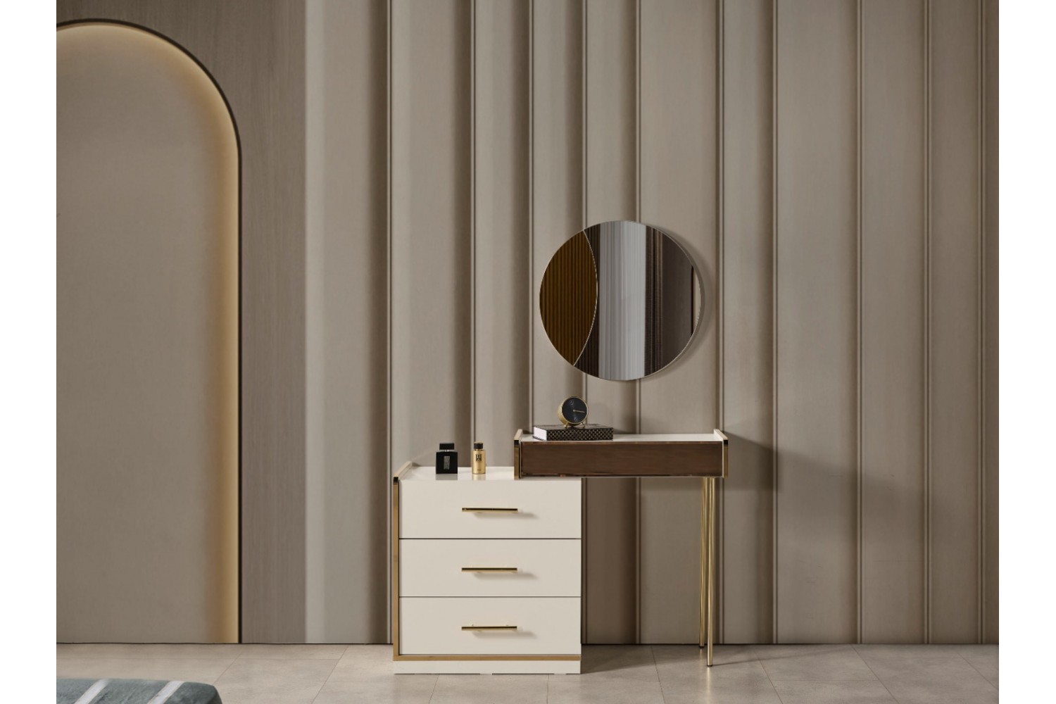 Takım İçeriği 1 Adet karyola,( karyola demiri fiyata dahil değildir . 1 adet gardırop, 2 adet komidin ve 1 adet şifonyerden oluşmaktadır.