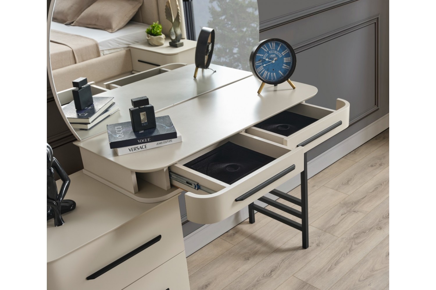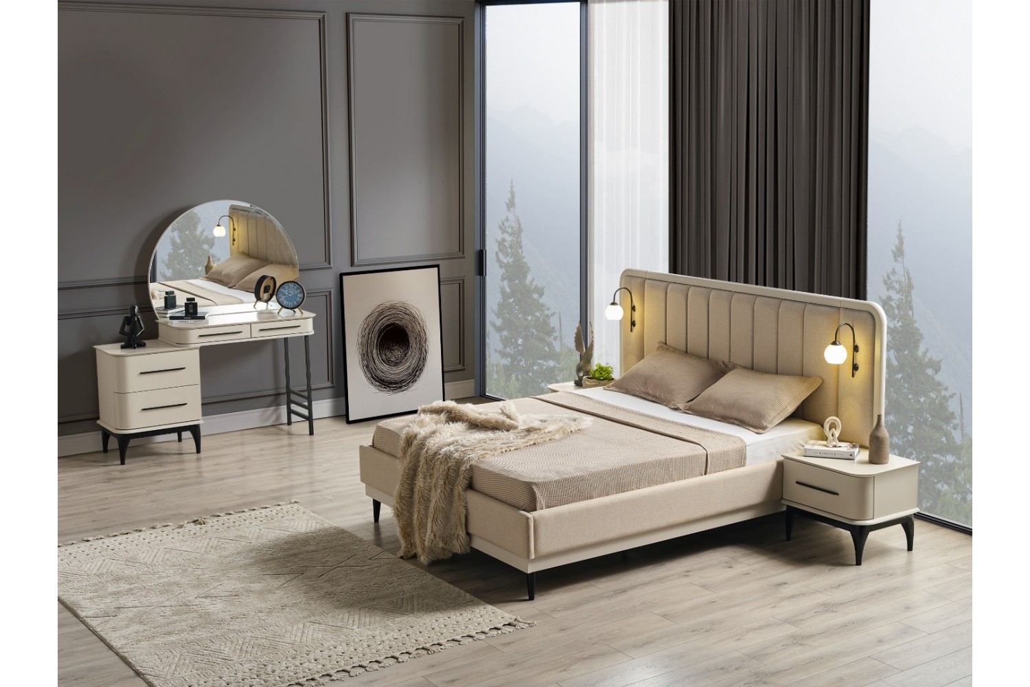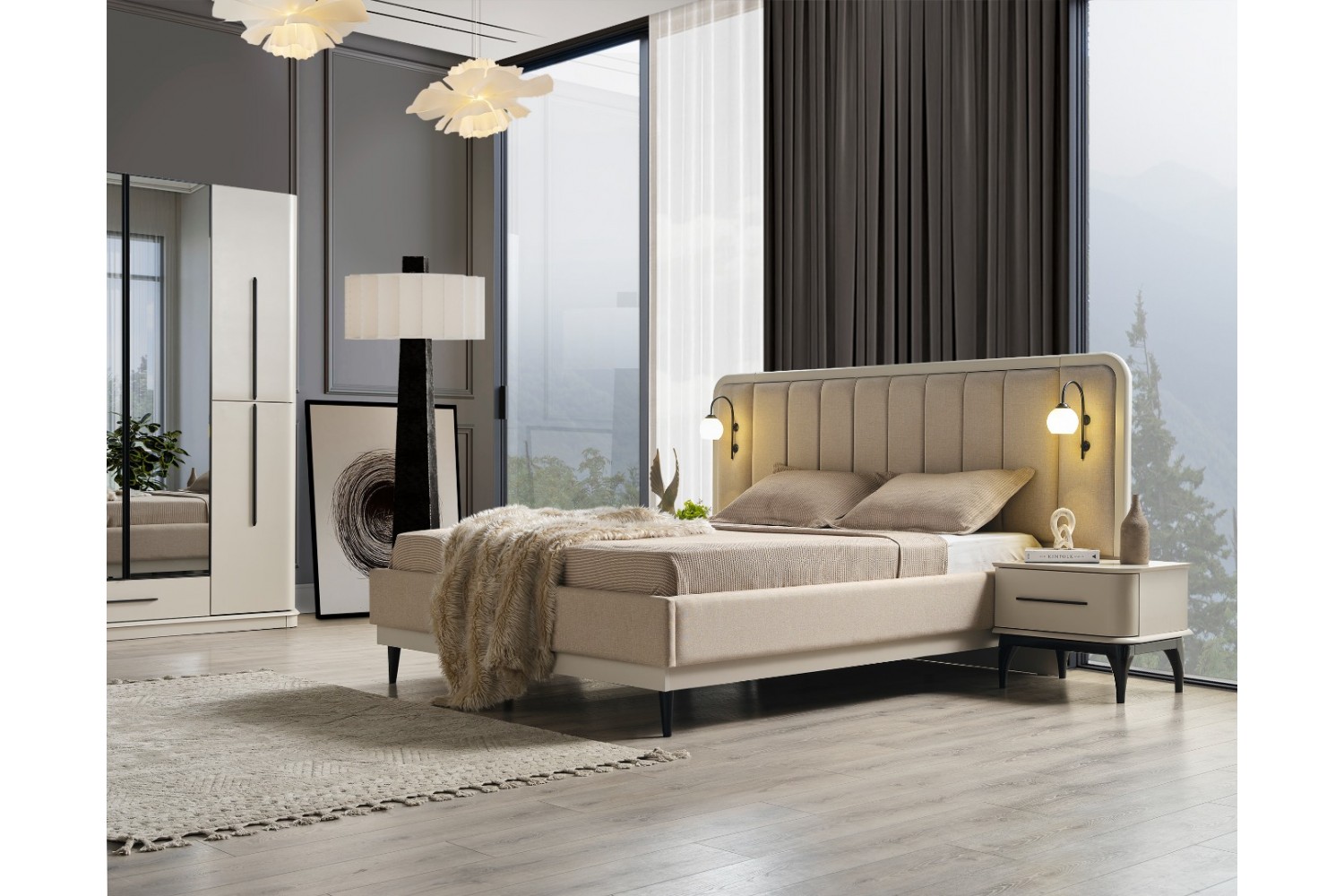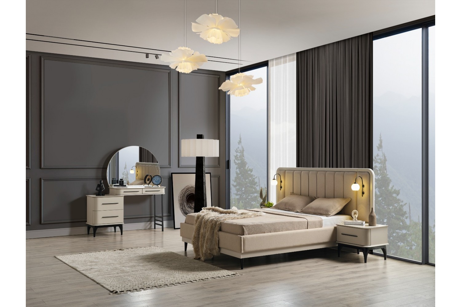 Takım İçeriği 1 Adet karyola,( karyola demiri fiyata dahil değildir . 1 adet gardırop, 2 adet komidin ve 1 adet şifonyerden oluşmaktadır.
