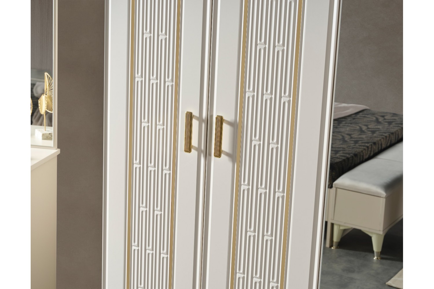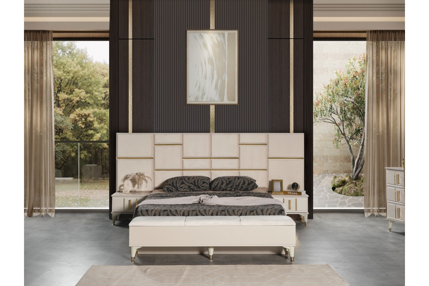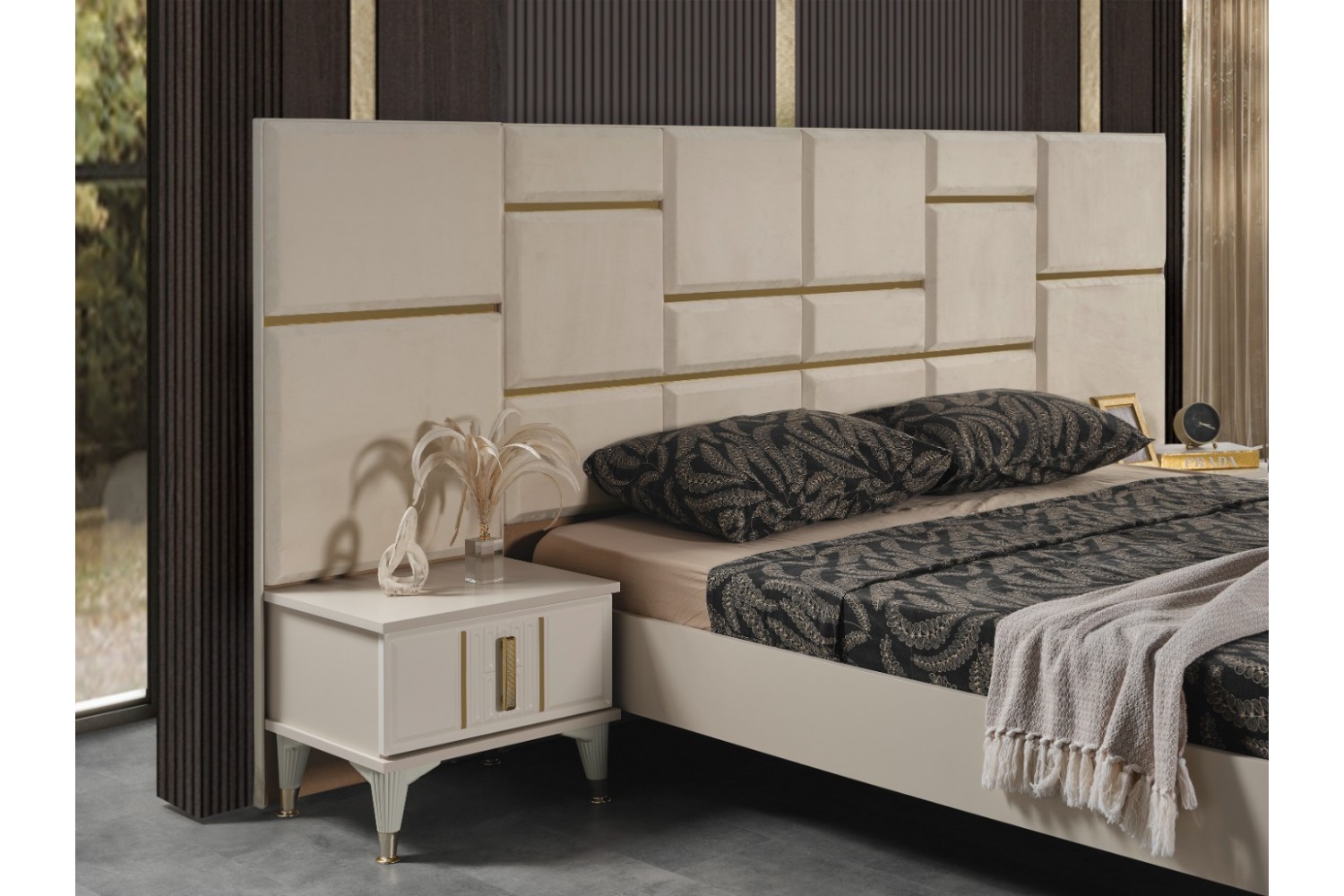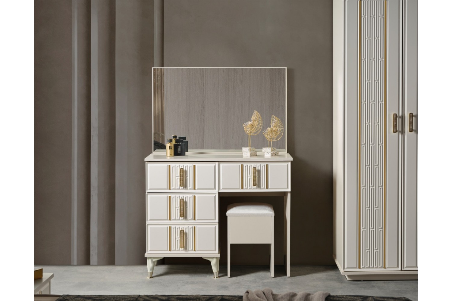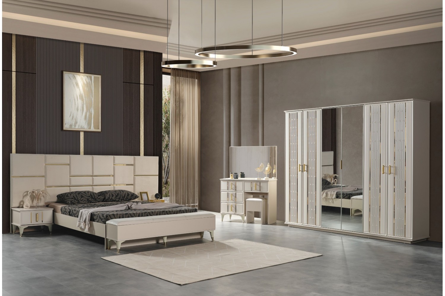 Takım İçeriği 1 Adet karyola,( karyola demiri fiyata dahil değildir . 1 adet gardırop, 2 adet komidin ve 1 adet şifonyerden oluşmaktadır.