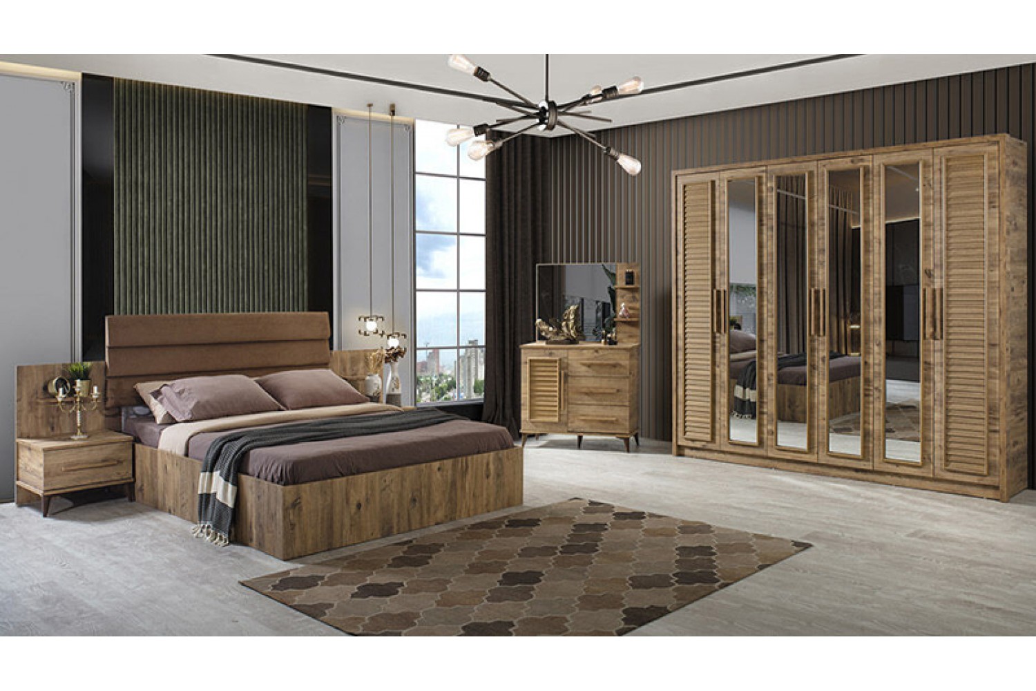 Takım İçeriği 1 Adet karyola,( karyola demiri fiyata dahil değildir . 1 adet gardırop, 2 adet komidin ve 1 adet şifonyerden oluşmaktadır.