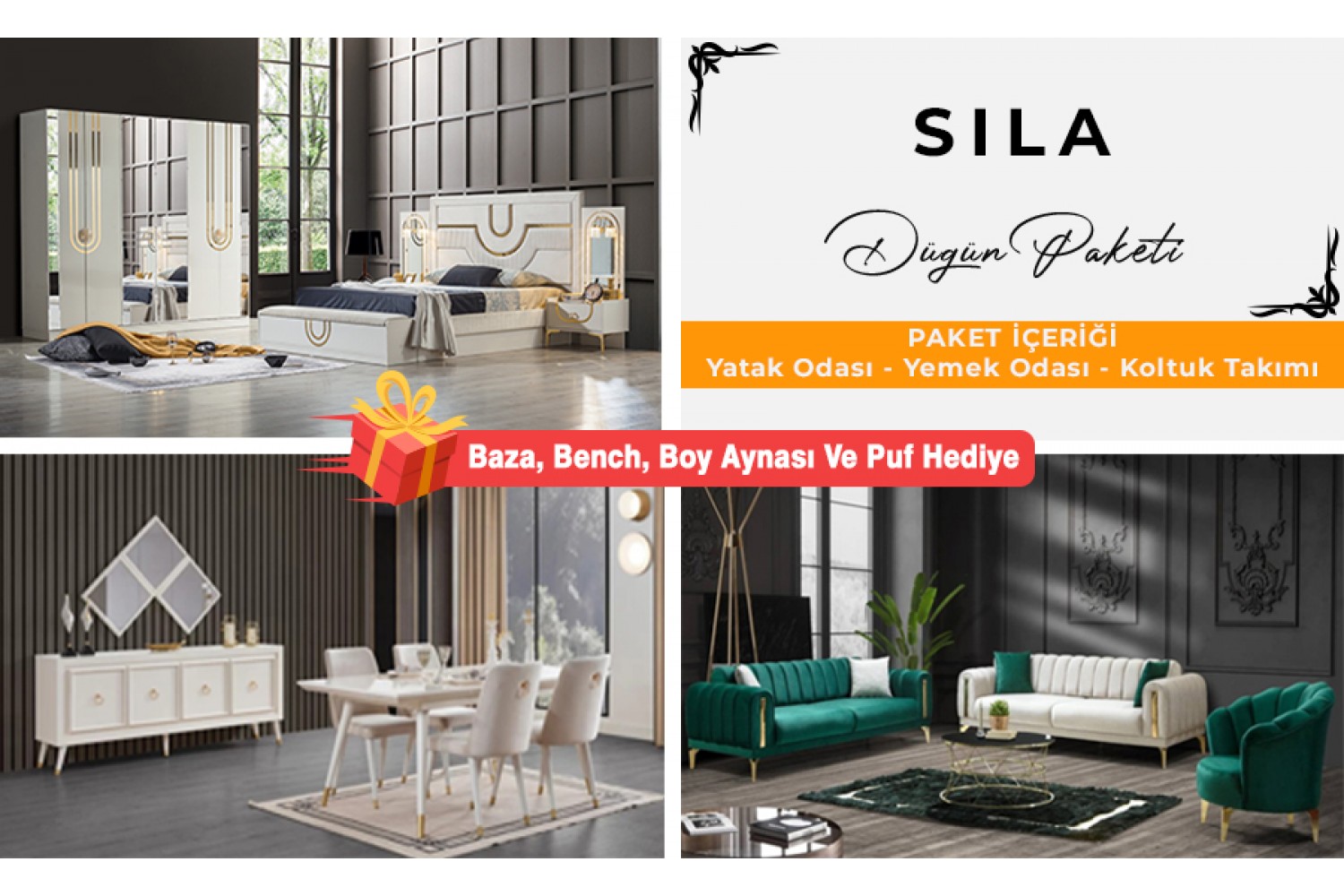 Safir Düğün Paketi Baza, Bench, Boy Aynası Ve Puf Hediye