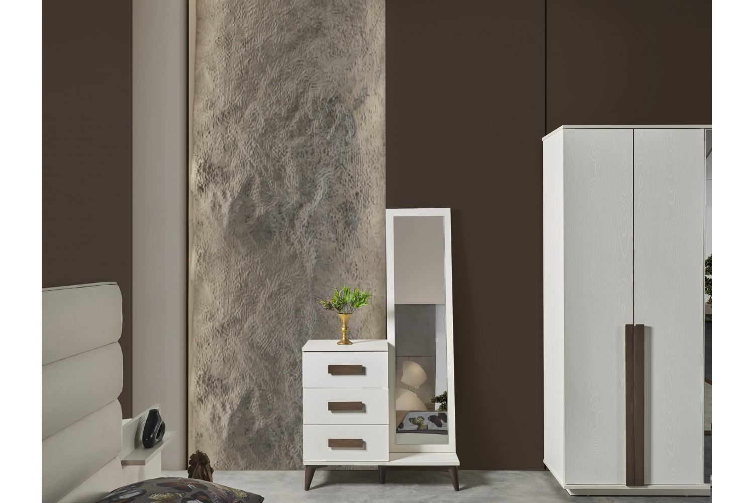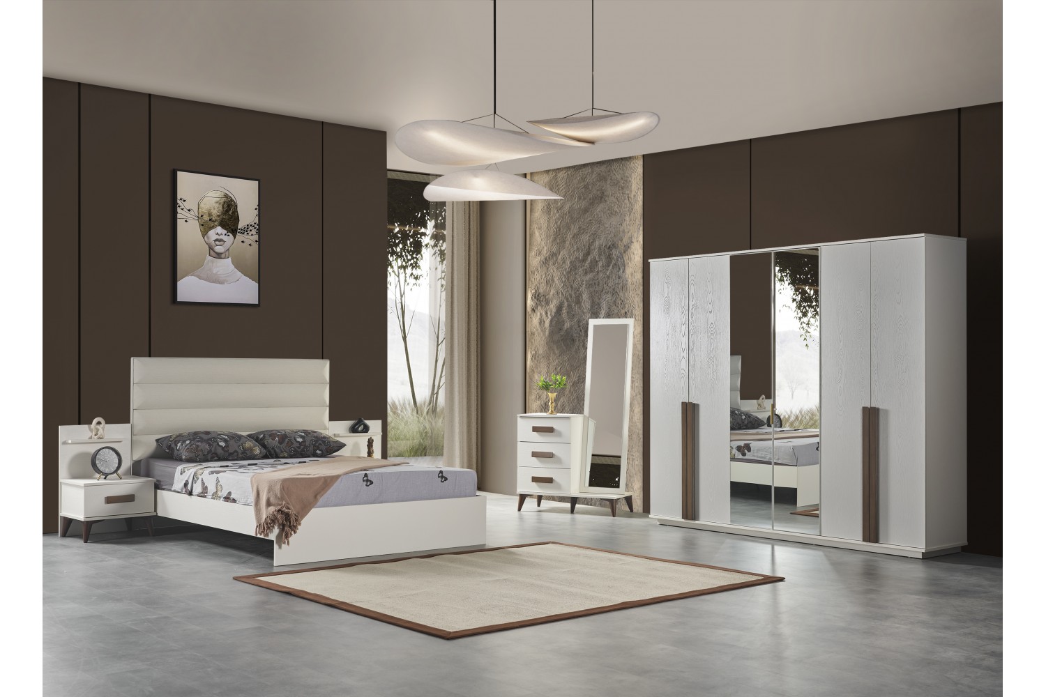 | Takım İçeriği | 1 Adet karyola,( karyola demiri fiyata dahil değildir . 1 adet gardırop, 2 adet komidin ve 1 adet şifonyerden oluşmaktadır. |