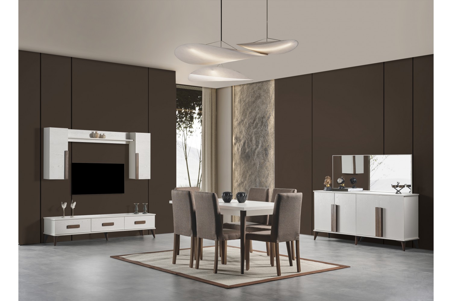 | Takım İçeriği | 1 adet masa + 4 adet sandalye + 1 adet Konsoldan oluşmaktadır. İsteğe bağlı Tv Ünitesi eklenebilmektedir. İsterseniz, Konsolu iptal edebilir yerine TV ünitesini seçebilirsiniz. |