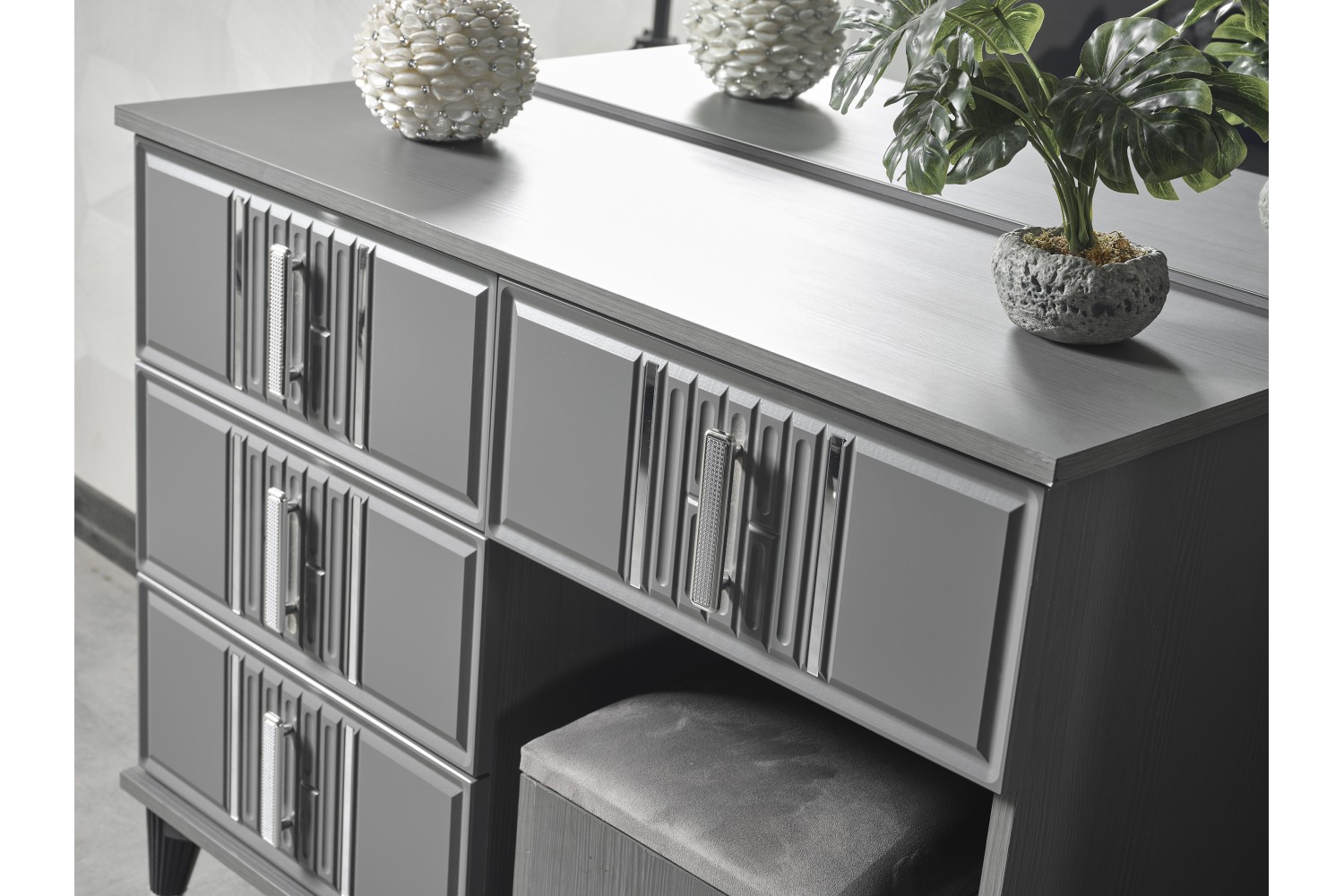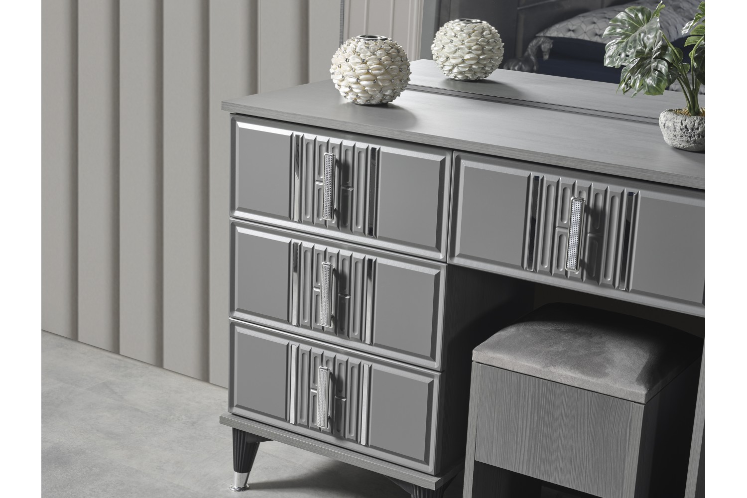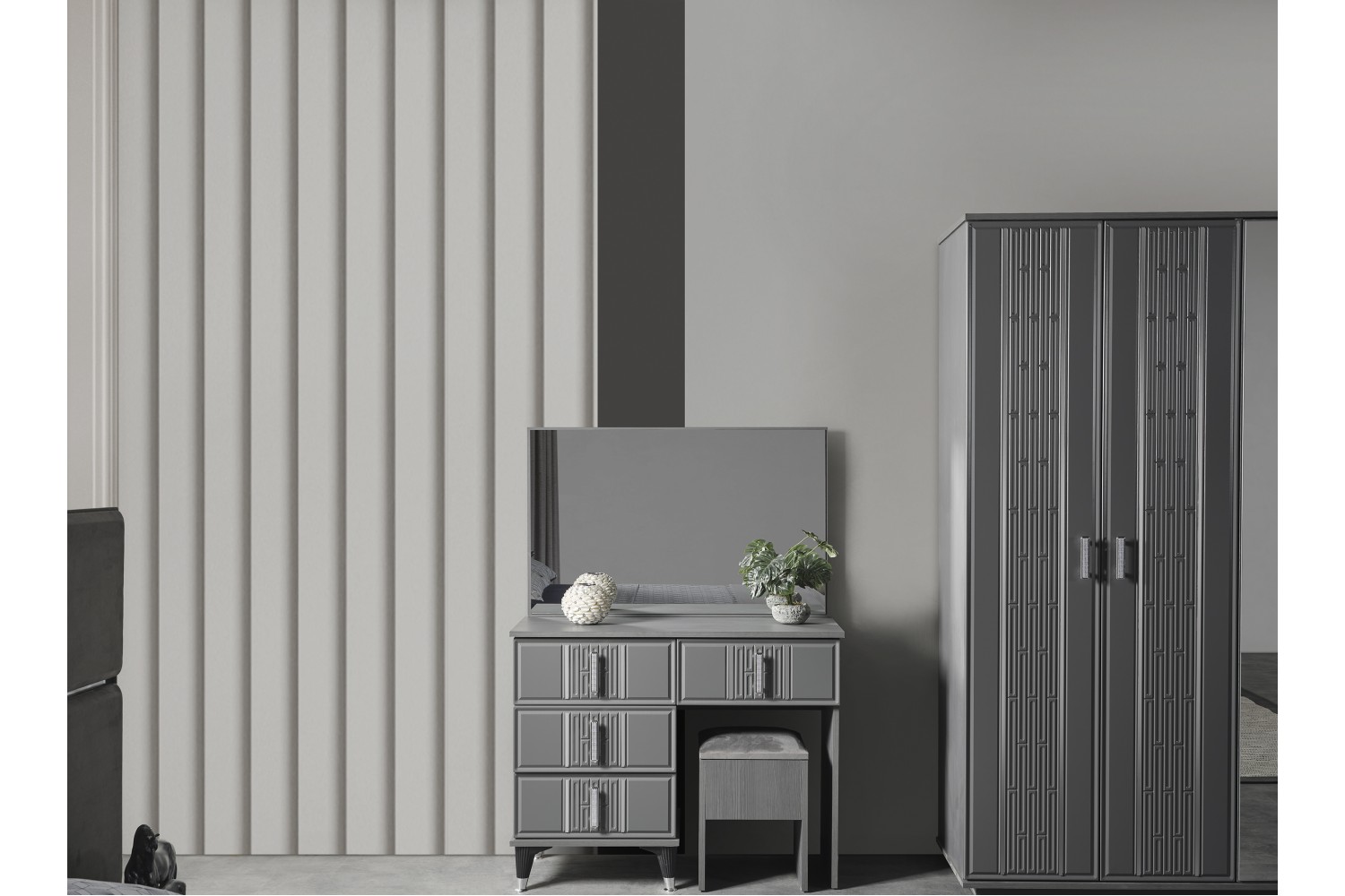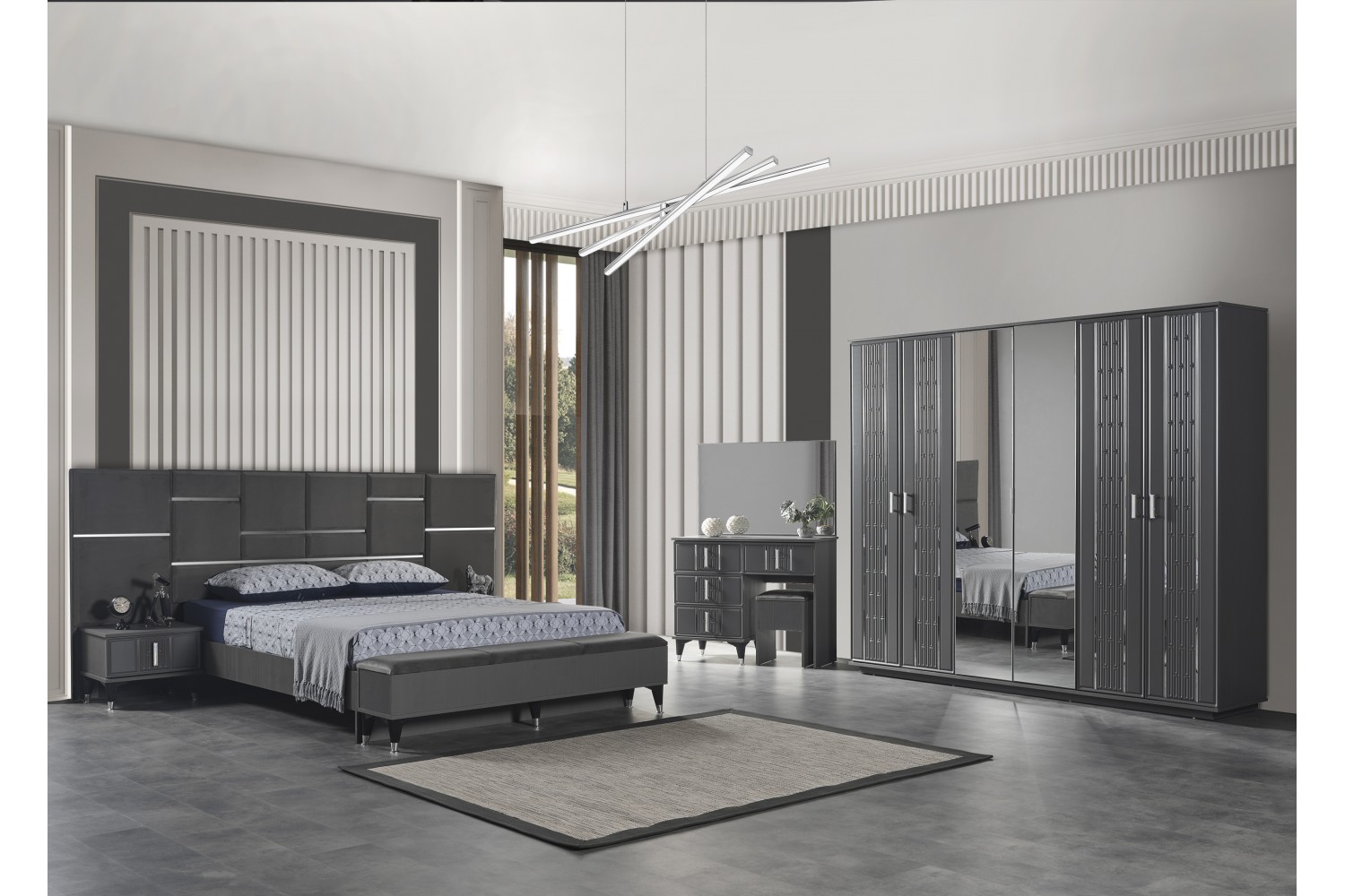 Takım İçeriği 1 Adet karyola,( karyola demiri fiyata dahil değildir . 1 adet gardırop, 2 adet komidin ve 1 adet şifonyerden oluşmaktadır.