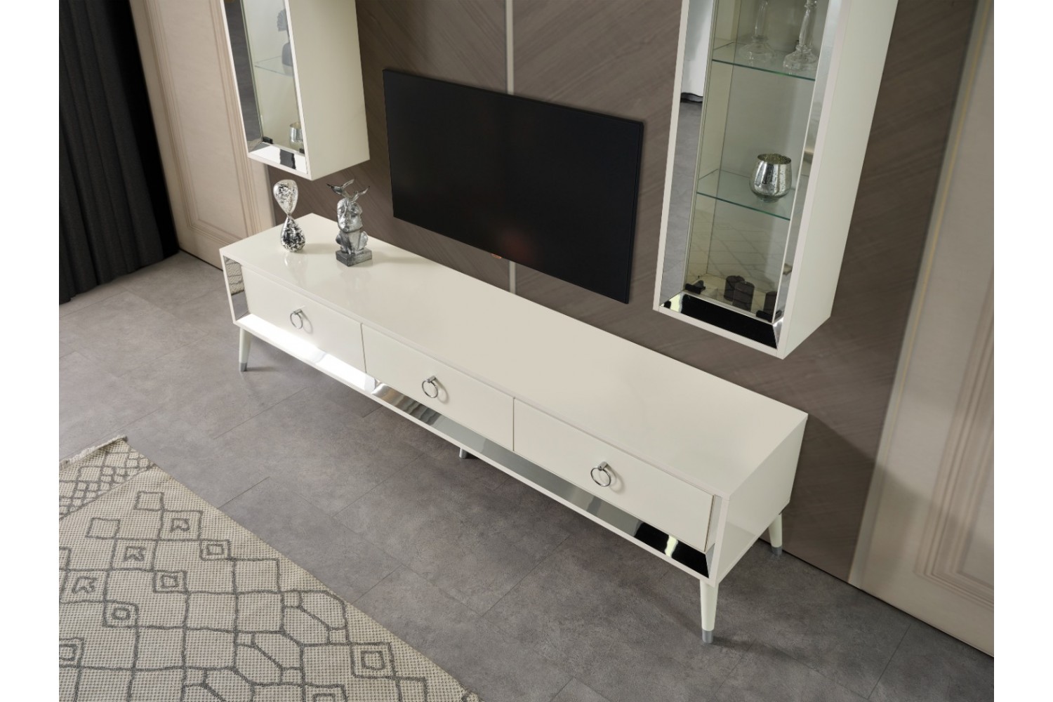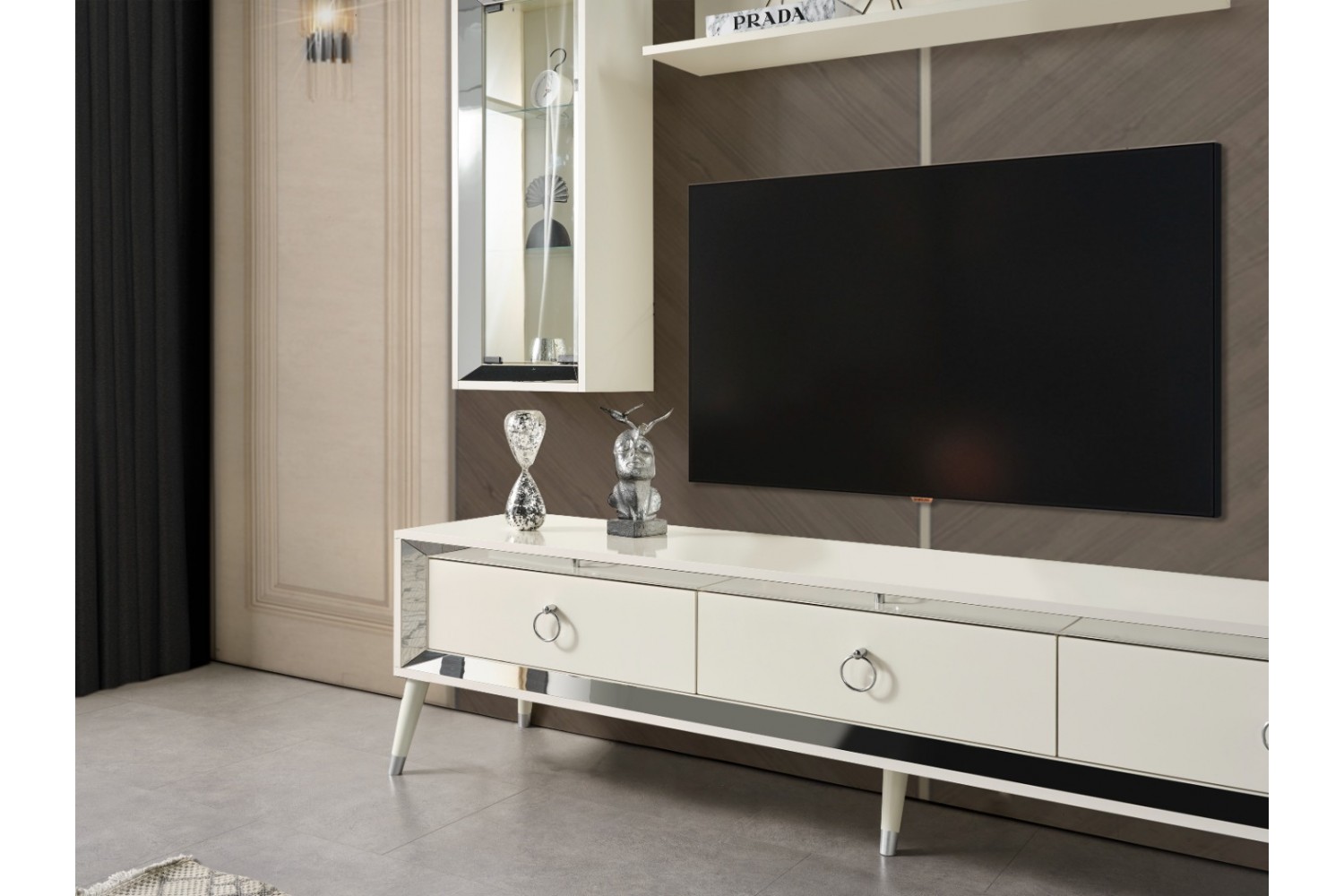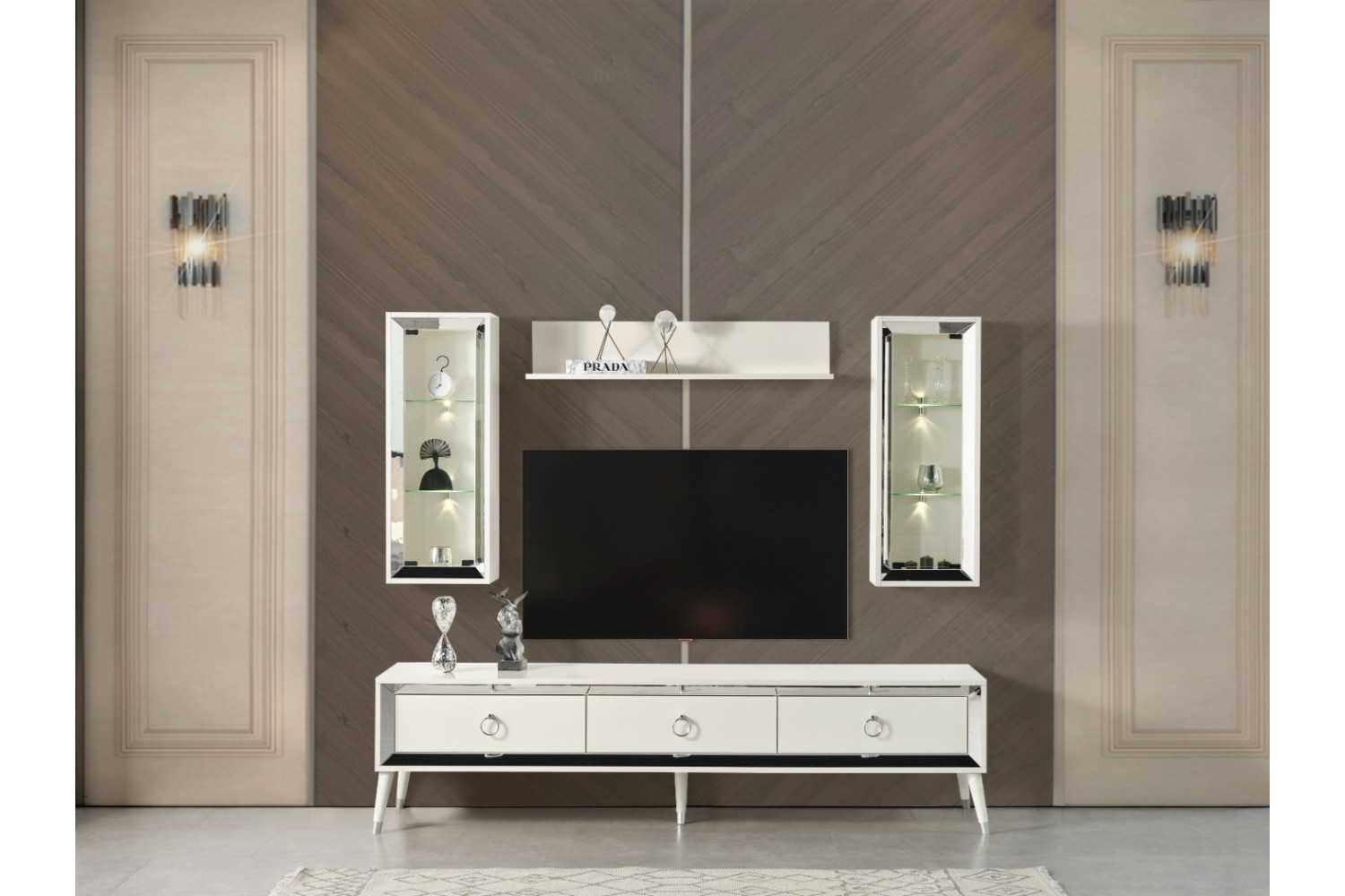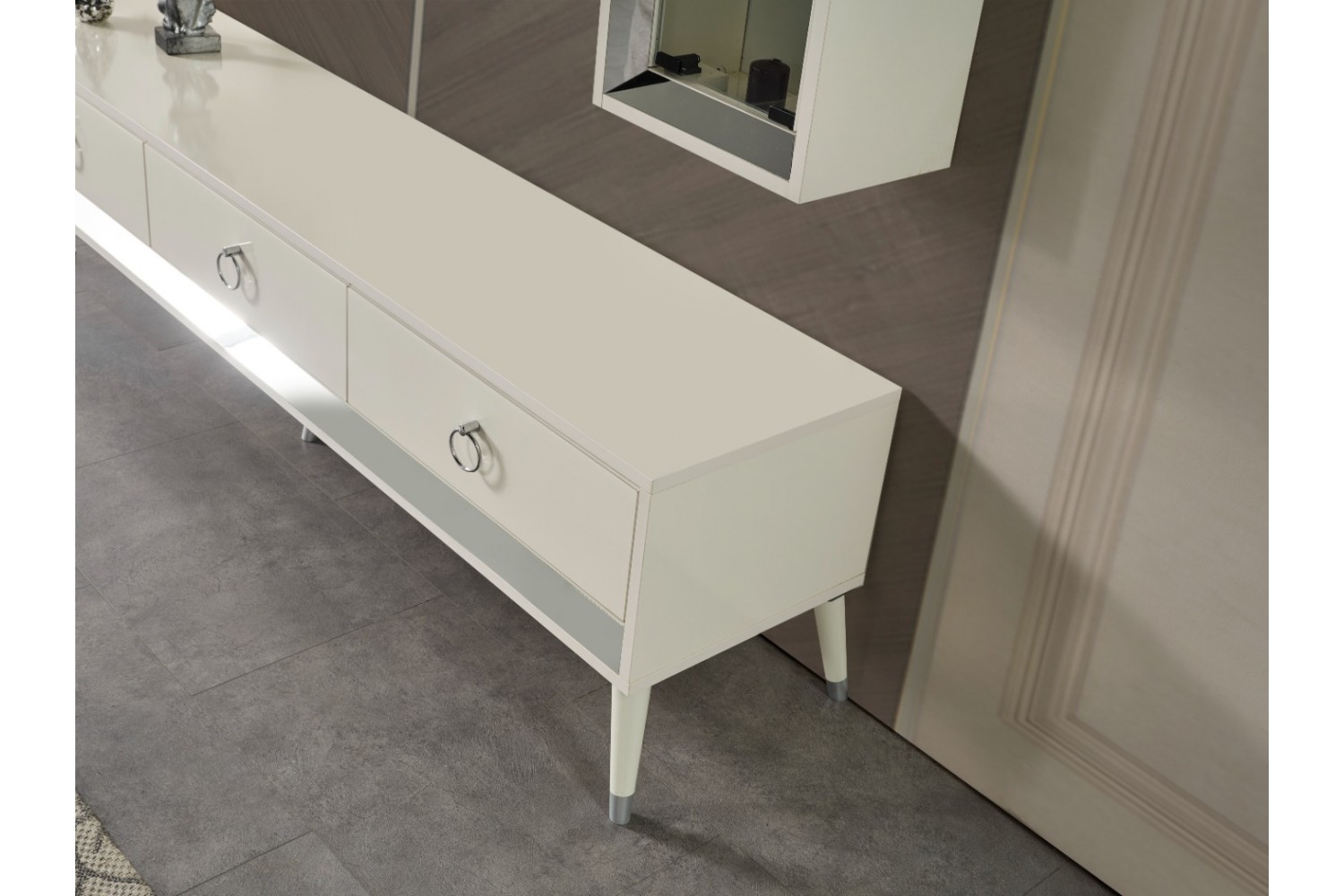 Kullanılan MalzemeGenişlik: Tv Sehpası - 179 cm / Raf - 22 cm Yükseklik: Tv Sehpası - 36 cm / Raf - 72 cm Derinlik: Tv Sehpası - 36 cm / Raf - 18 cm Birinci sınıf sıkıştırılmış 18mm yonga levha (suntalem) ile üretilmiştir.Üründe Minifix bağlantı sistemi kullanılmıştır.Ürün demonte olarak gönderilmektedir.Paketlerde kolay ve eğlenceli kurulum için gerekli kurulum şeması, tüm vida ve aksesuarların montaj seması ile uyumlu malzeme torbası ve kullanma kılavuzu çıkmaktadır.