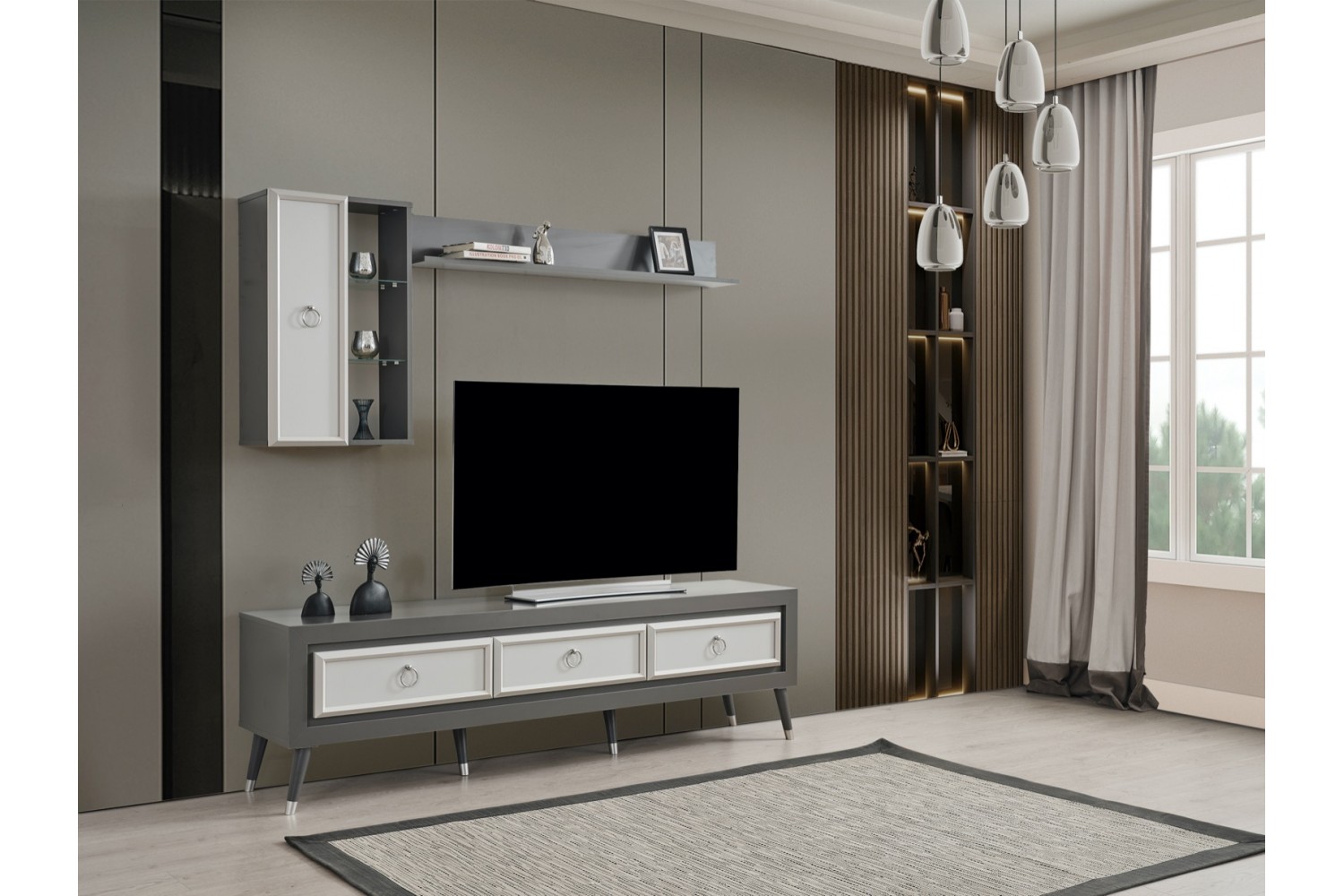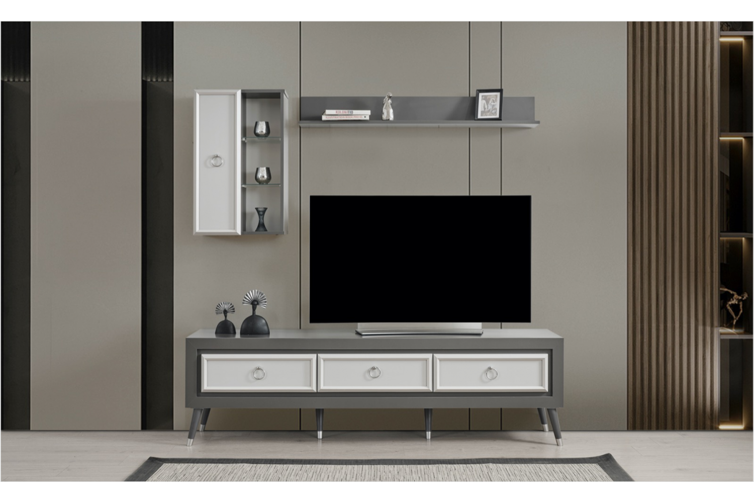Kullanılan MalzemeGenişlik: Tv Sehpası - 179 cm / Raf - 22 cm Yükseklik: Tv Sehpası - 36 cm / Raf - 72 cm Derinlik: Tv Sehpası - 36 cm / Raf - 18 cm Birinci sınıf sıkıştırılmış 18mm yonga levha (suntalem) ile üretilmiştir.Üründe Minifix bağlantı sistemi kullanılmıştır.Ürün demonte olarak gönderilmektedir.Paketlerde kolay ve eğlenceli kurulum için gerekli kurulum şeması, tüm vida ve aksesuarların montaj seması ile uyumlu malzeme torbası ve kullanma kılavuzu çıkmaktadır.