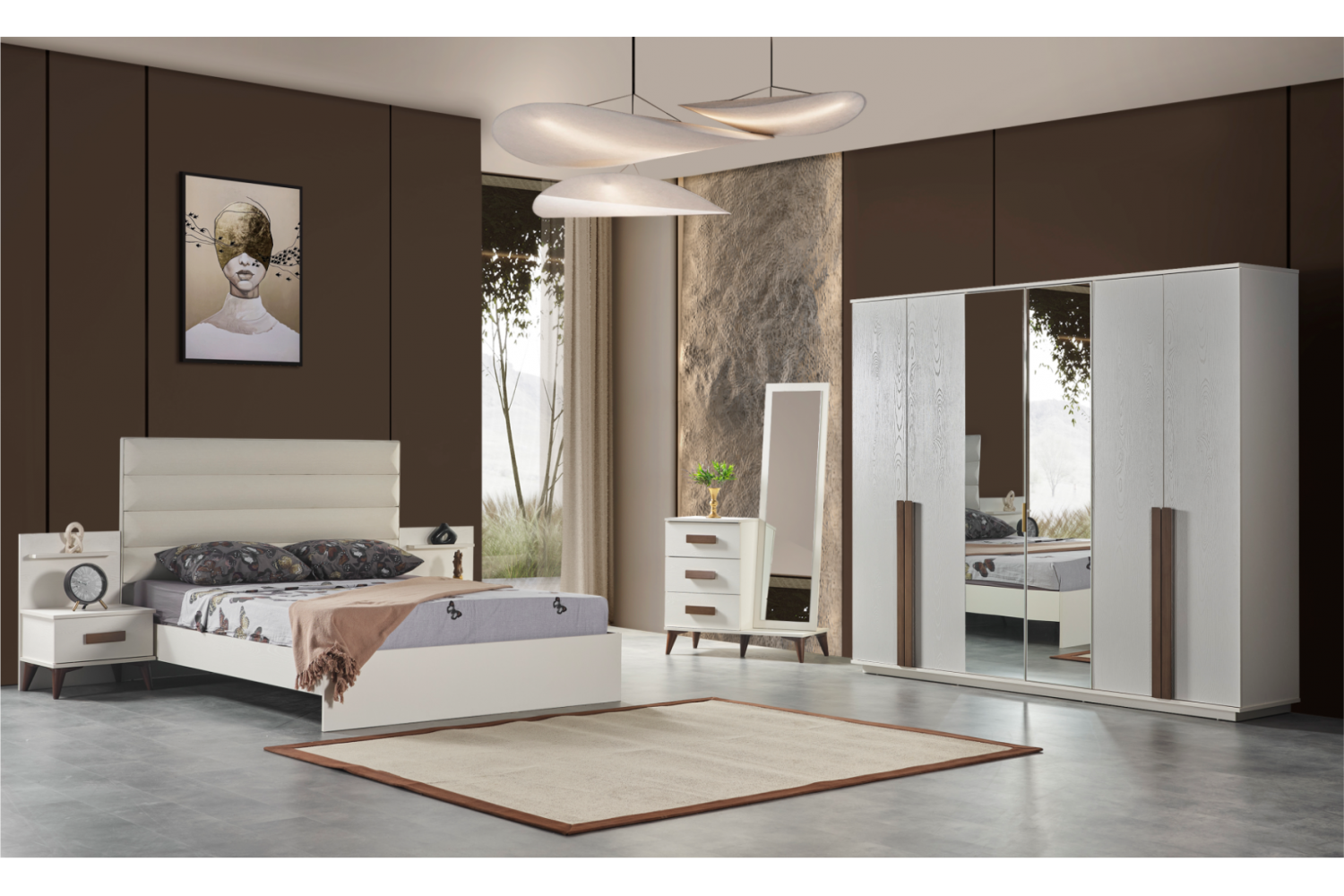 Takım İçeriği 1 Adet karyola,( karyola demiri fiyata dahil değildir . 1 adet gardırop, 2 adet komidin ve 1 adet şifonyerden oluşmaktadır.
