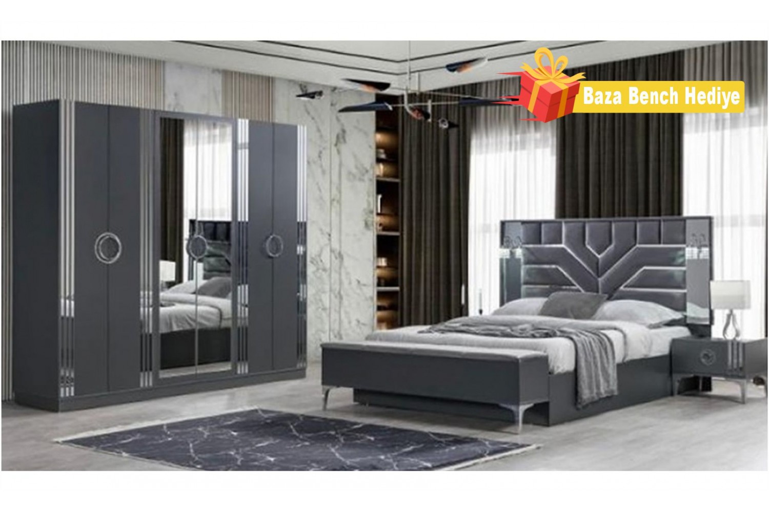 Lotto Antrasit Yatak Odası BAZA BENCH HEDİYELİ