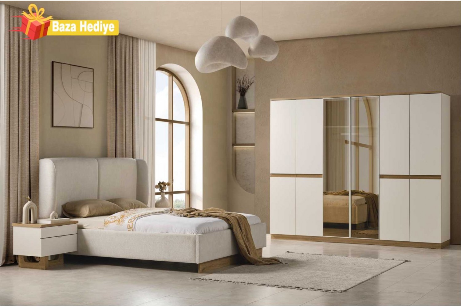 Takım İçeriği 1 Adet karyola,( karyola demiri fiyata dahil değildir . 1 adet gardırop, 2 adet komidin ve 1 adet şifonyerden oluşmaktadır.