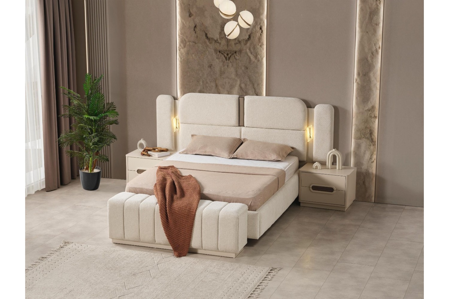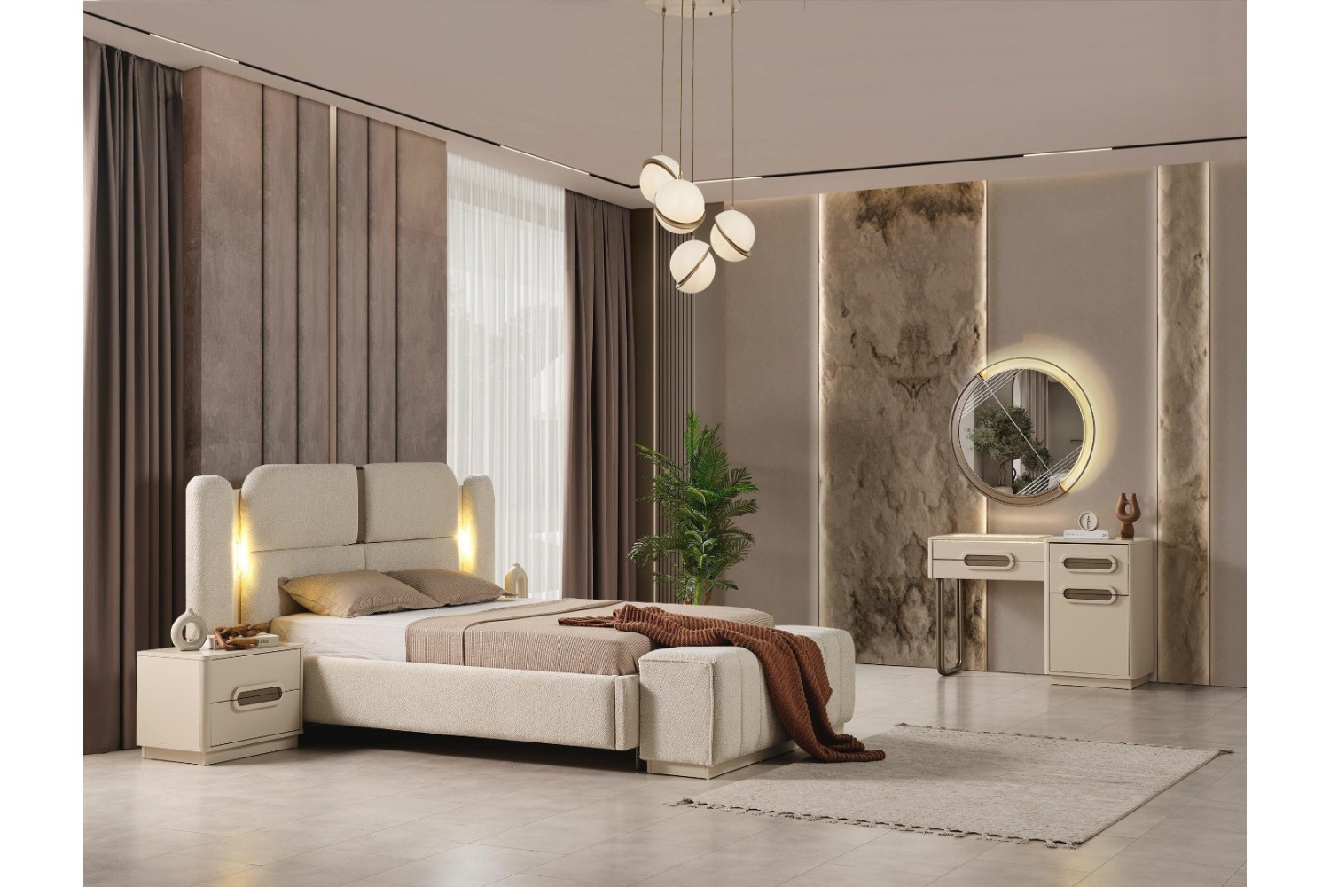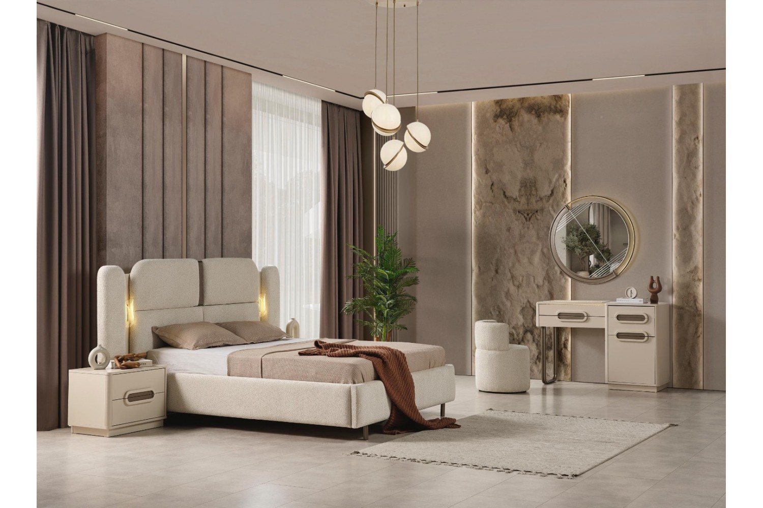 Takım İçeriği 1 Adet karyola,( karyola demiri fiyata dahil değildir . 1 adet gardırop, 2 adet komidin ve 1 adet şifonyerden oluşmaktadır.