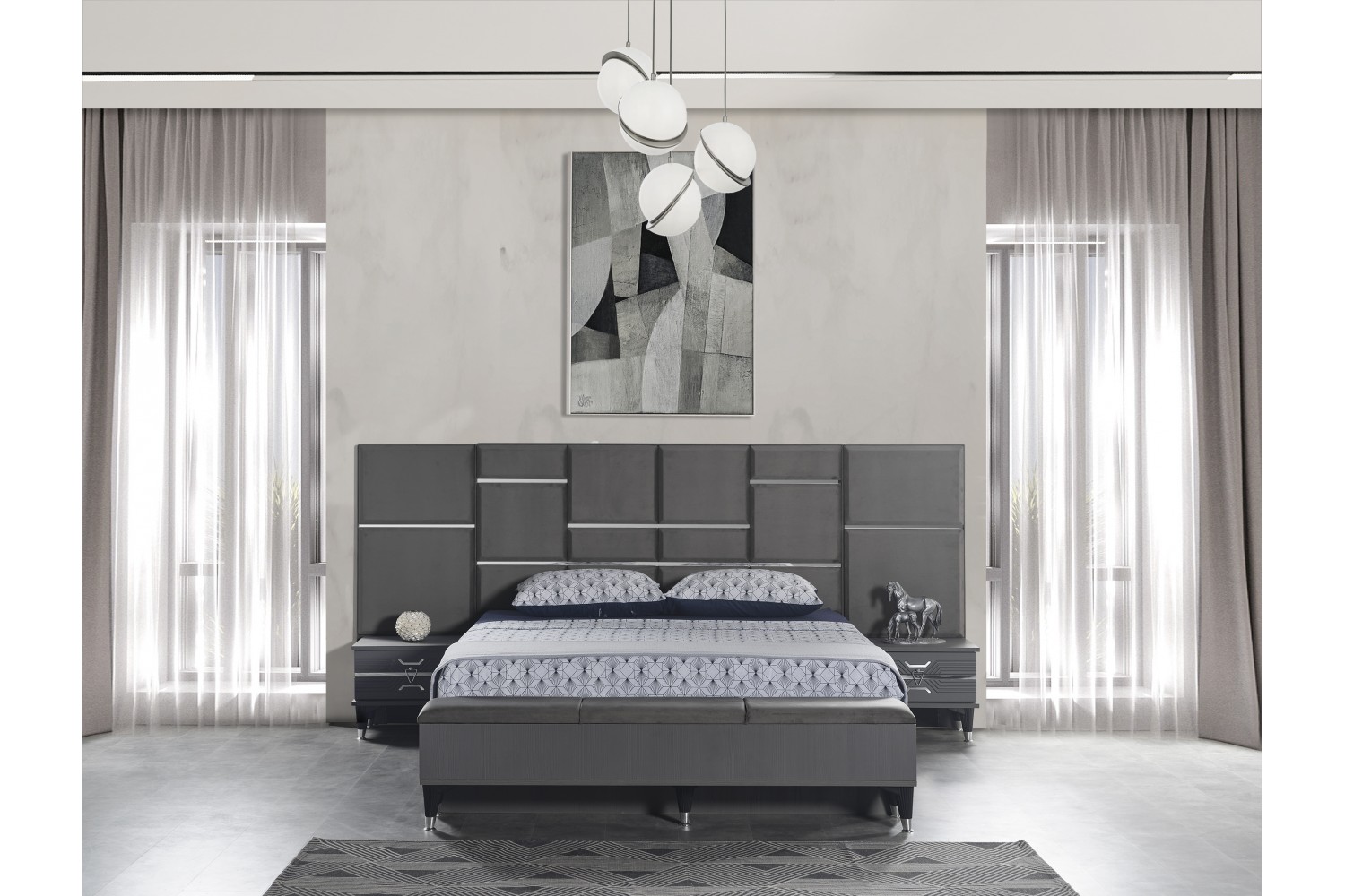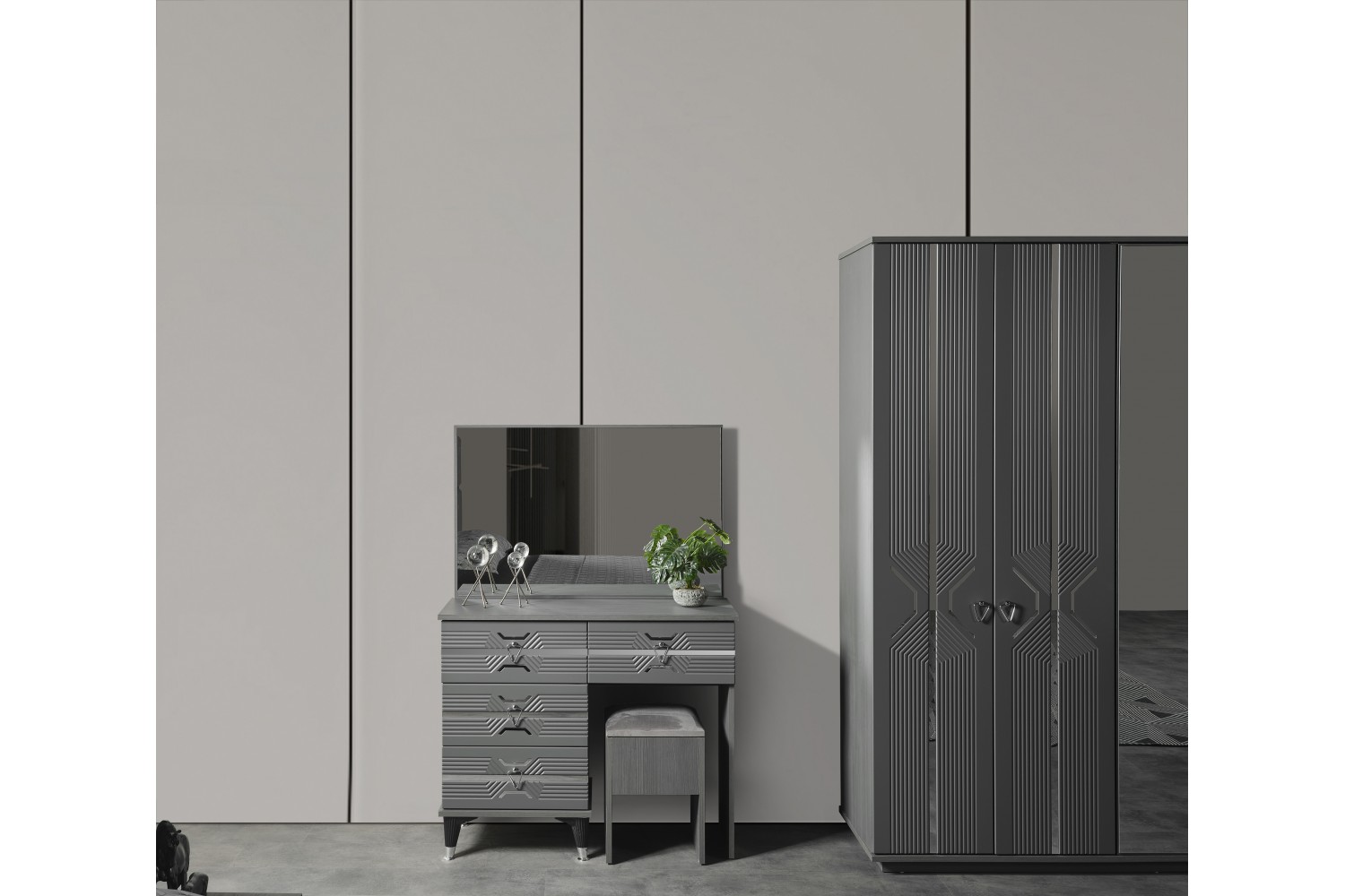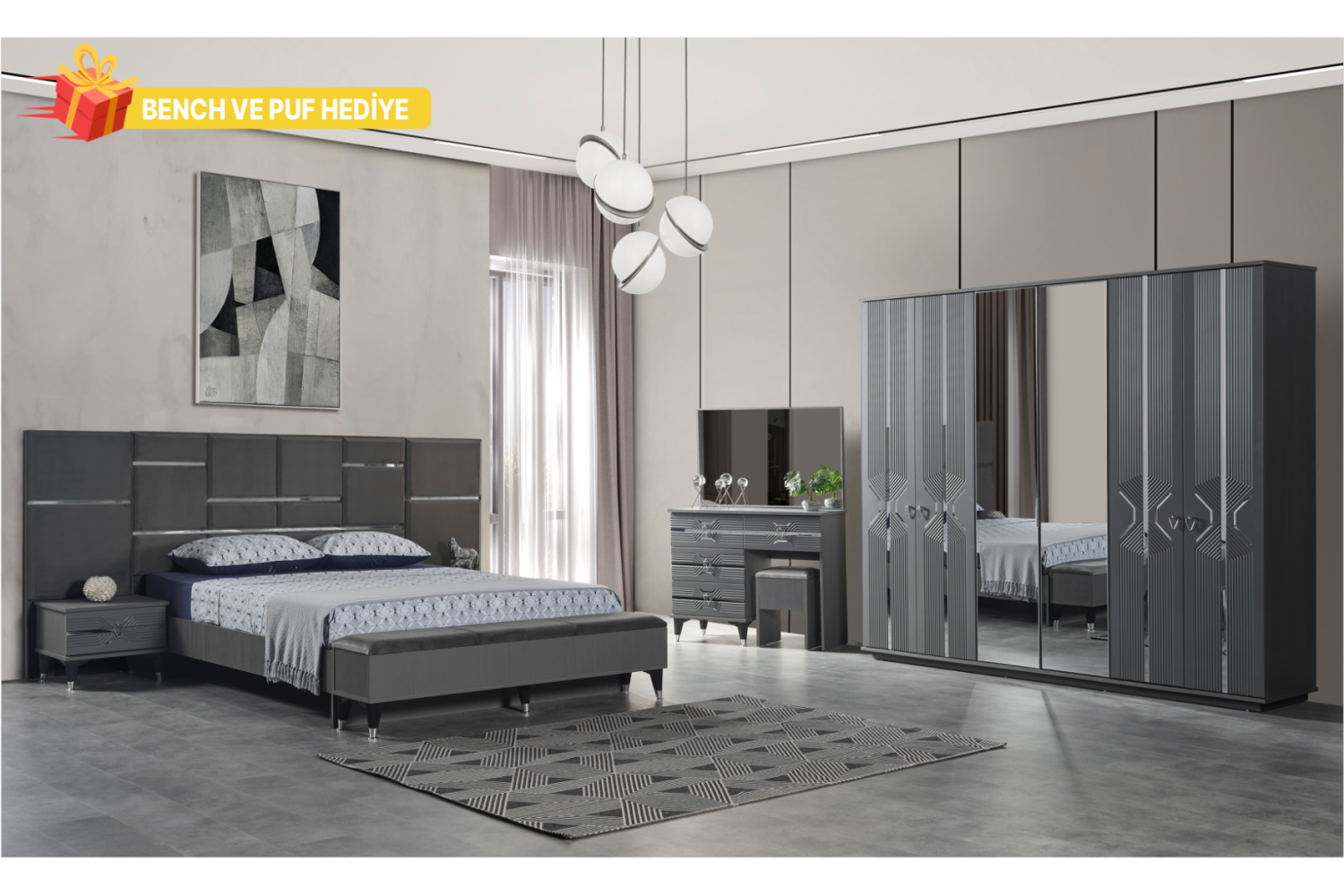 Takım İçeriği 1 Adet karyola,( karyola demiri fiyata dahil değildir . 1 adet gardırop, 2 adet komidin ve 1 adet şifonyerden oluşmaktadır.
