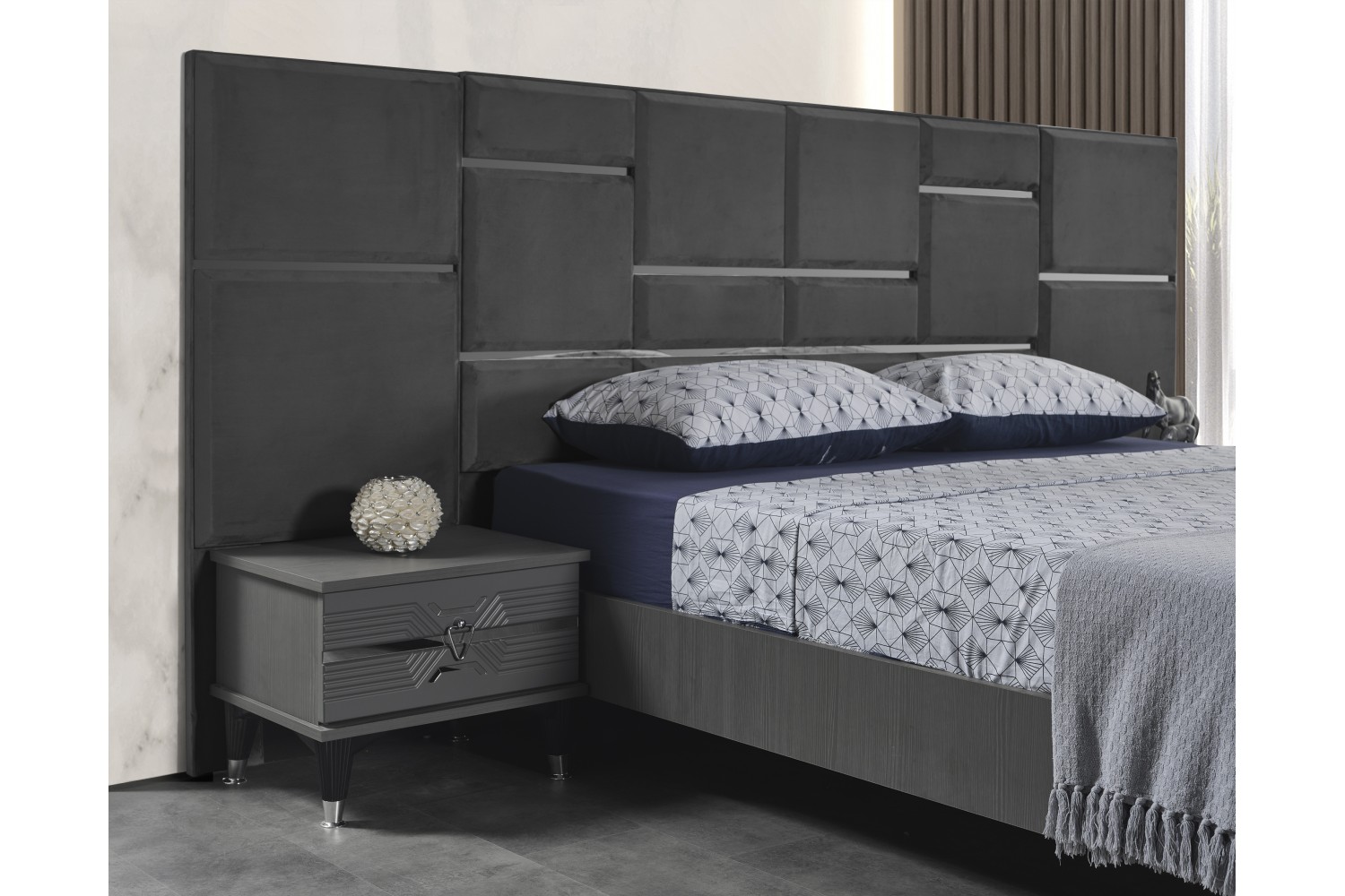 Karyola ve Başlık ÖzellikleriKaryola başlığı sunta üzerine sünger ve kumaş döşenerek üretilmiştir.