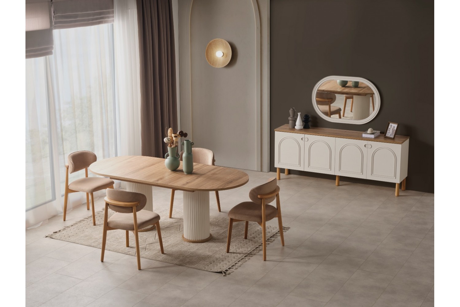Takım İçeriği 1 adet masa + 4 adet sandalye + 1 adet Tv Ünitesi  dan oluşmaktadır. İsteğe bağlı Konsol ekleyebilirsiniz .