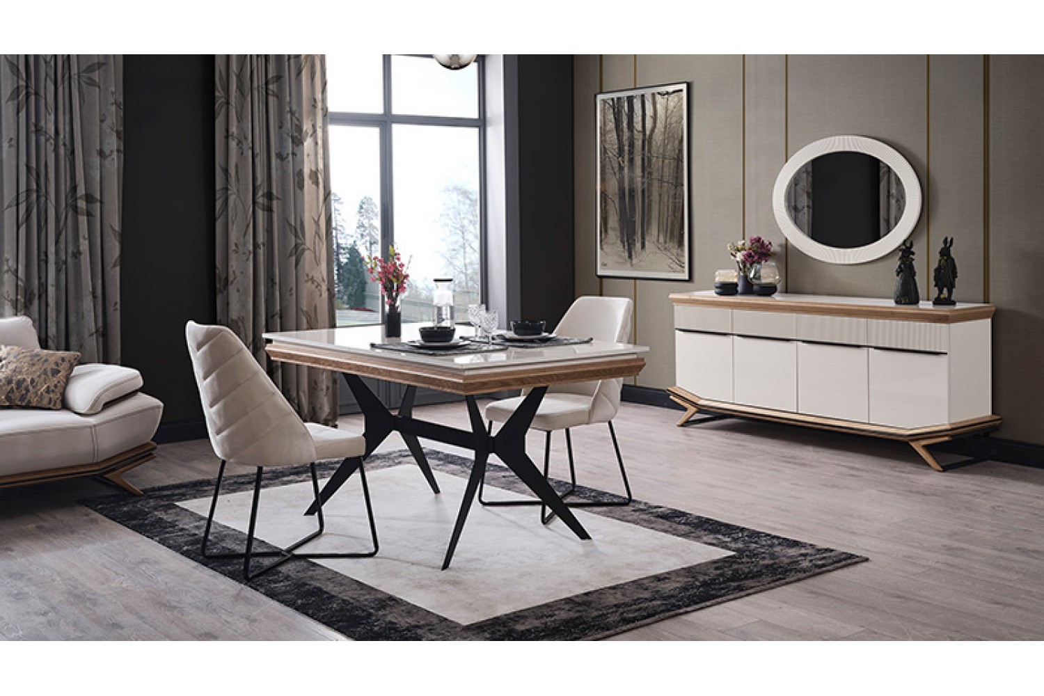 Takım İçeriği  1 adet masa + 4 adet sandalye + 1 adet konsol^dan oluşmaktdır. İsteğe bağlı  Tv Ünitesi seçebilirsiniz .