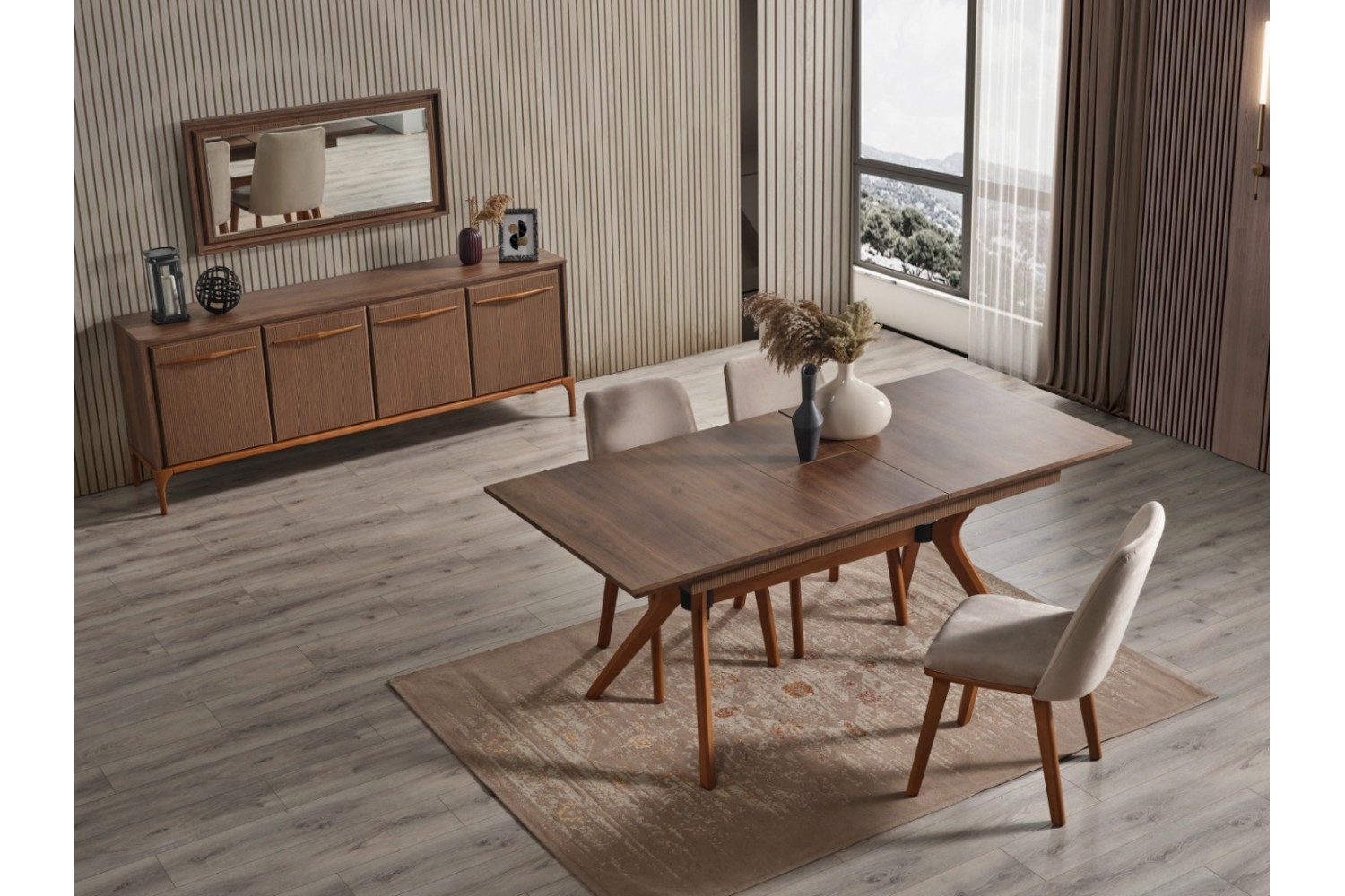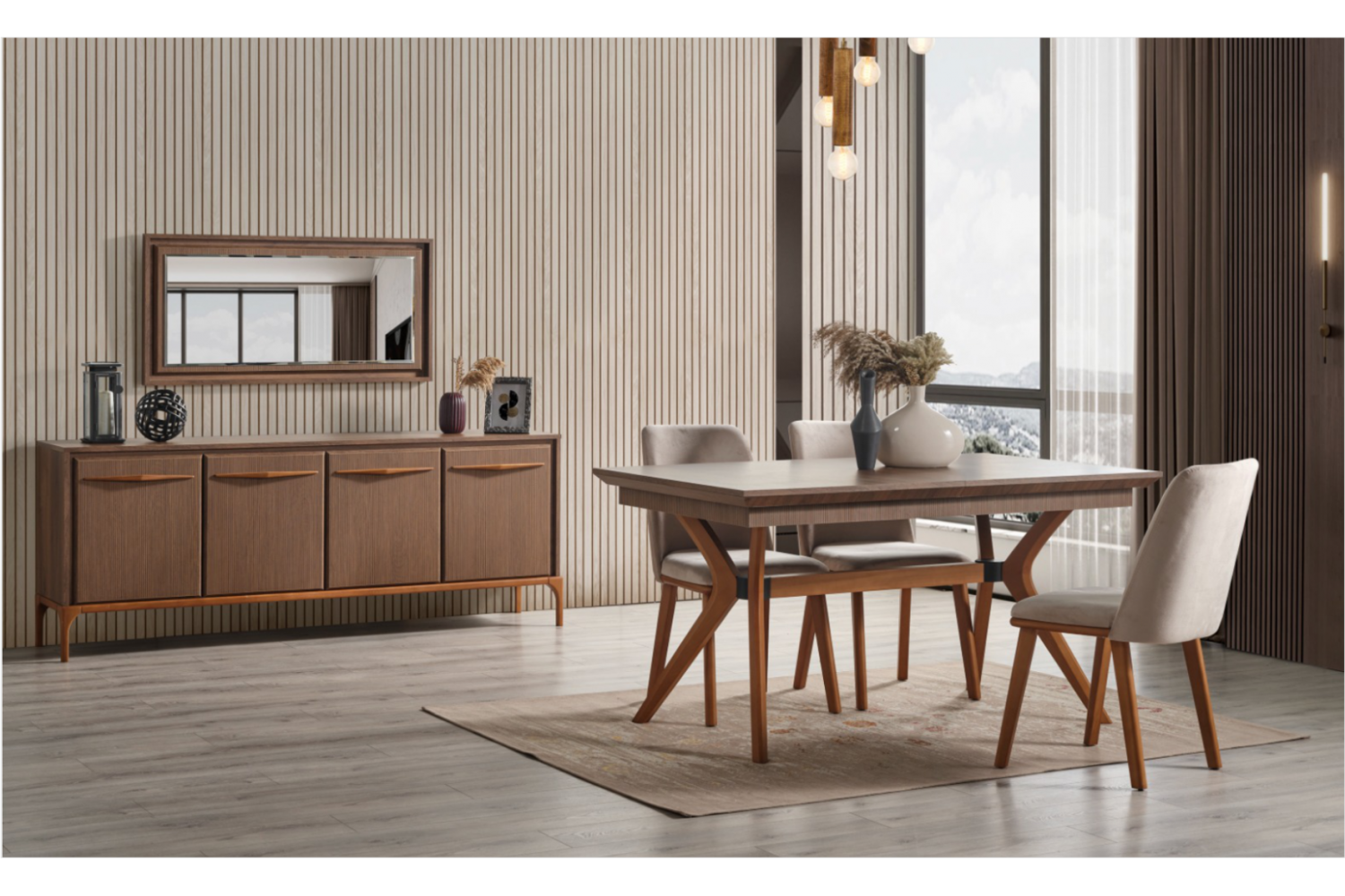 Takım İçeriği 1 adet masa + 4 adet sandalye + 1 adet Tv Ünitesi  dan oluşmaktadır. İsteğe bağlı Konsol ekleyebilirsiniz .