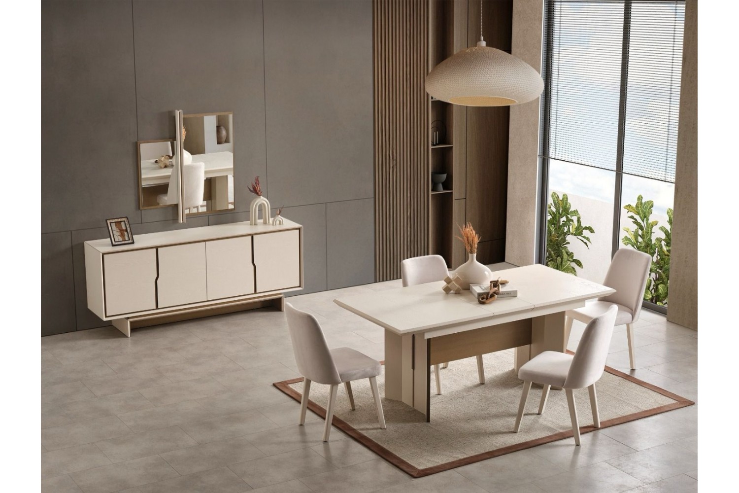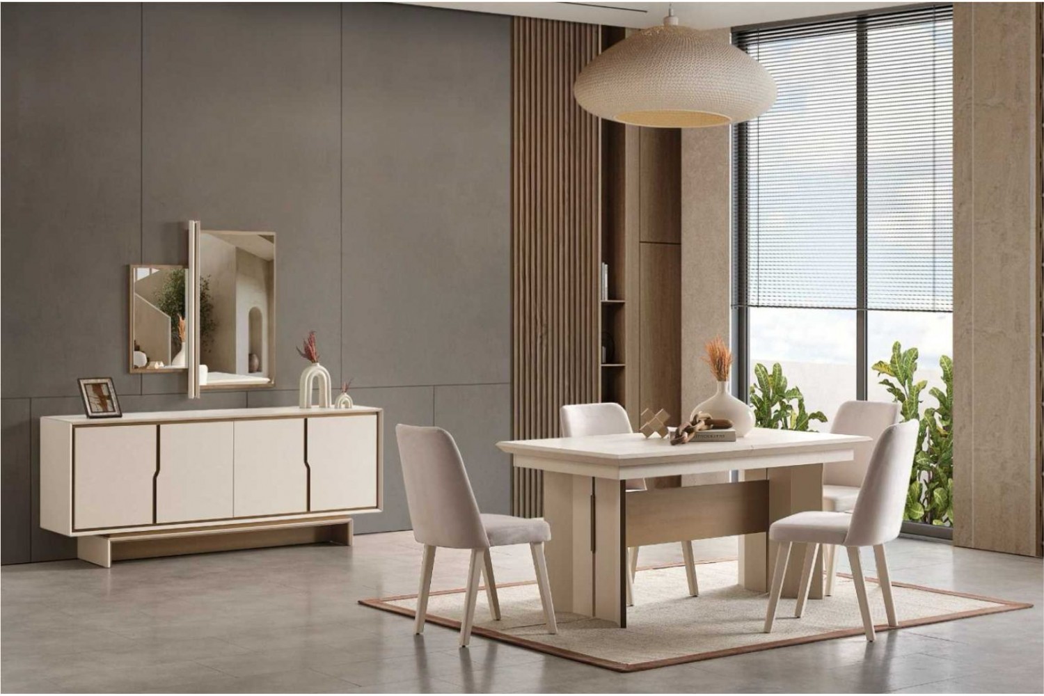 Takım İçeriği 1 Ad Konsol ve Aynası. 1 Ad masa ve 4 Ad Sandalyeden, Oluşmaktadır.Resimde Görünen Tv ünitesi ve Sehpa Fiyata Dahil Değildir. istege bağlı ekleme yapılmaktadır kosol yerine tv ünitesi ekleyebilirsiniz.