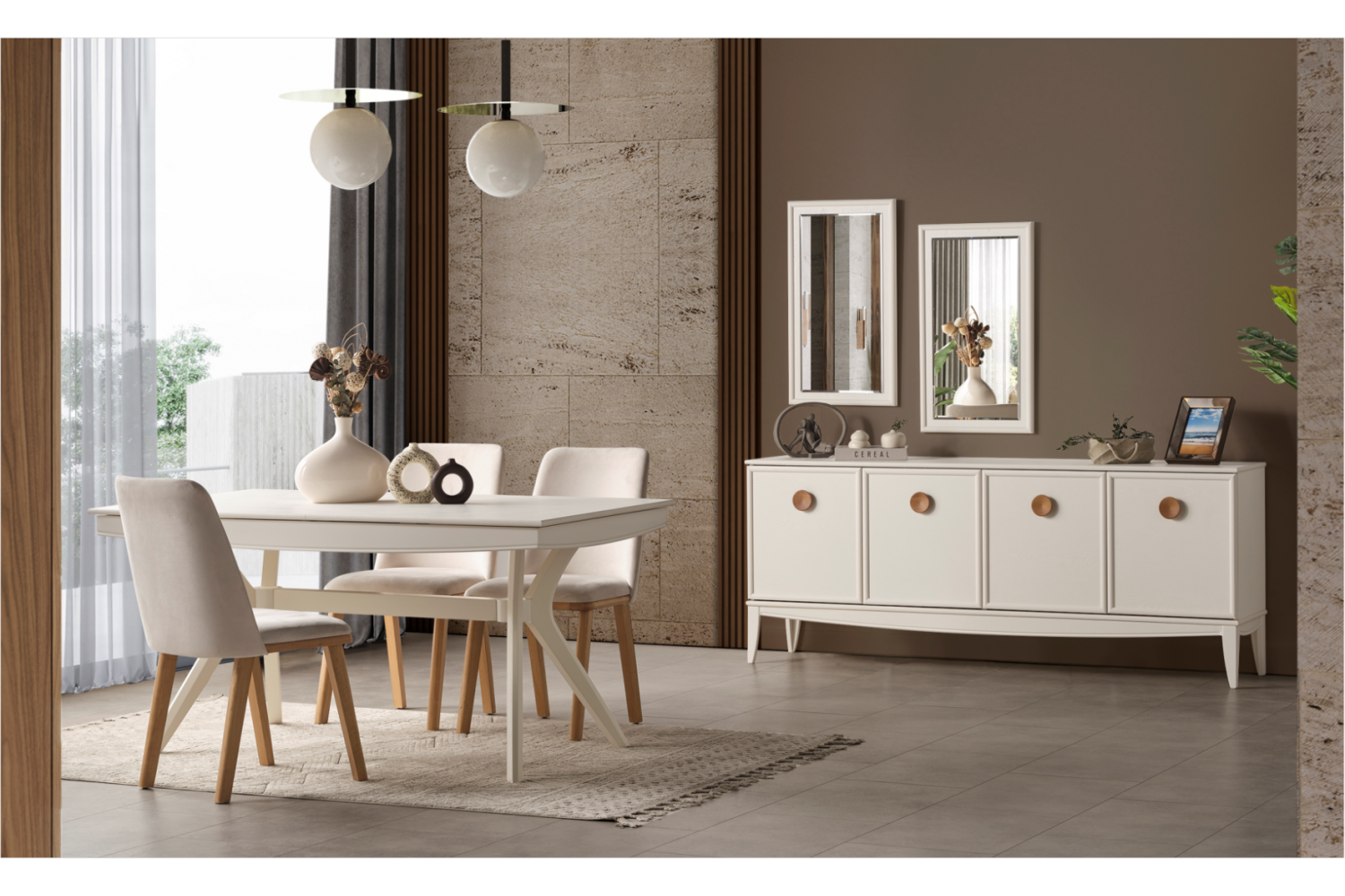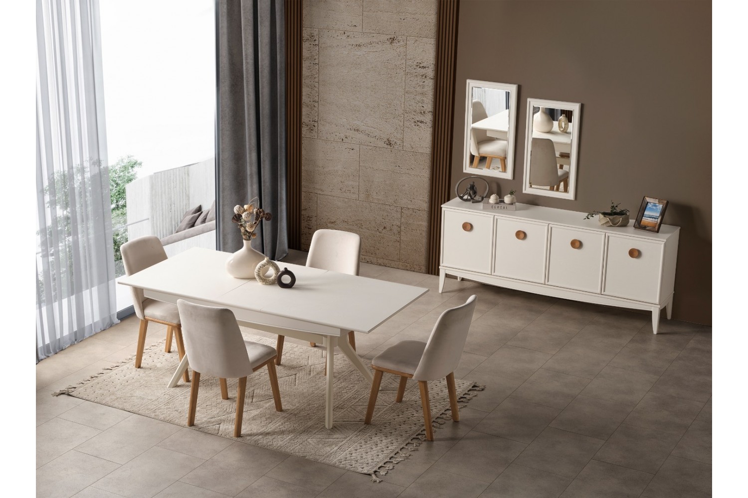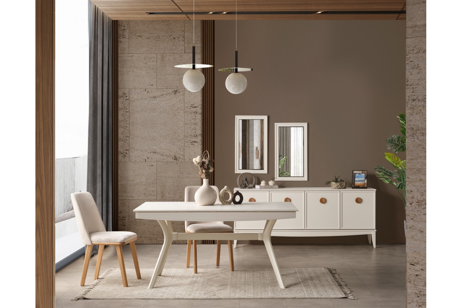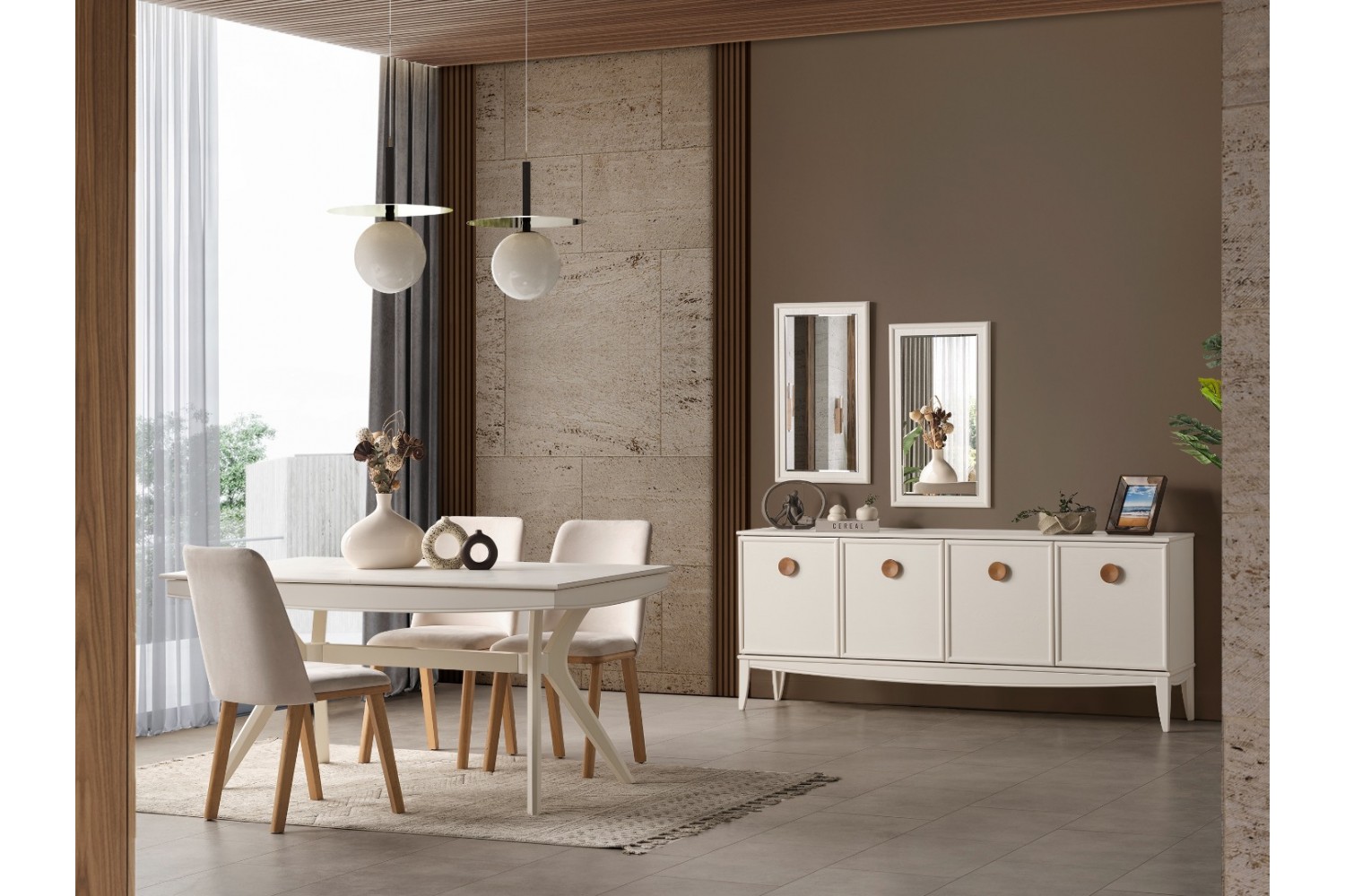 Takım İçeriği 1 adet masa + 4 adet sandalye + 1 adet Tv Ünitesi  dan oluşmaktadır. İsteğe bağlı Konsol ekleyebilirsiniz .