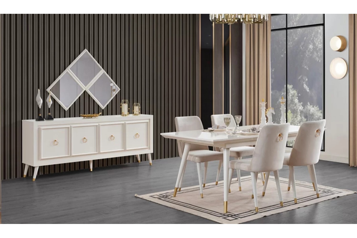 Takım İçeriği 1 Ad Konsol ve Aynası. 1 Ad masa ve  4 sandalye  Olusmaktadır. Resimde Görünen Tv Ünitesi Bench Fiyata Dahil Değildir. İsteğe bağlı ekleme yapılmaktadır  Konsol yerine Tv ünitesi ekleyebilirsiniz .