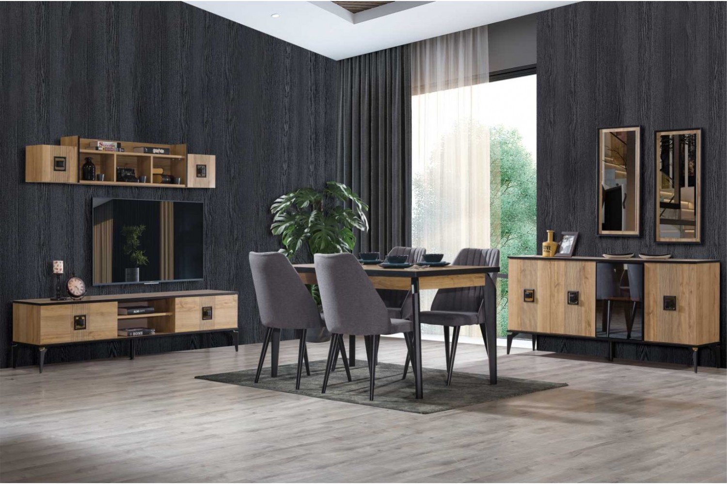 Takım İçeriği 1 adet masa + 4 adet sandalye + 1 adet Tv Ünitesi  dan oluşmaktadır. İsteğe bağlı Konsol ekleyebilirsiniz .