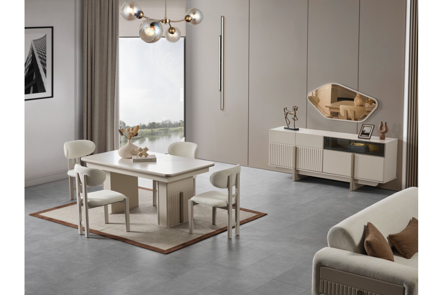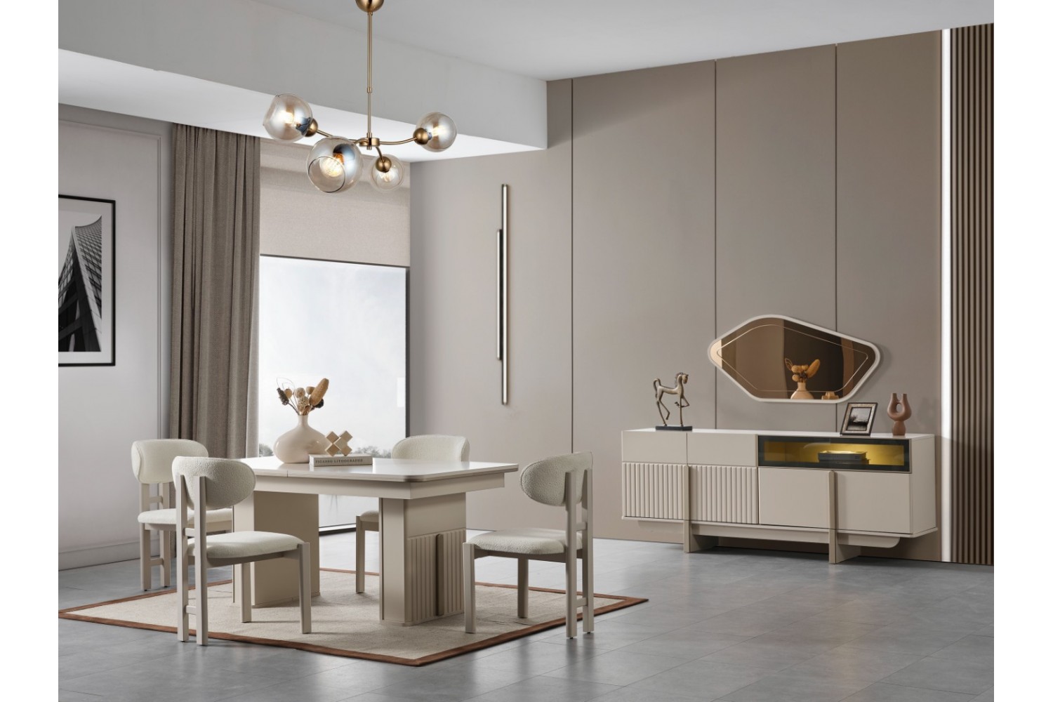 Takım İçeriği 1 Ad Konsol ve Aynası. 1 Ad masa ve  4 sandalye  Olusmaktadır. Resimde Görünen Tv Ünitesi Bench Fiyata Dahil Değildir. İsteğe bağlı ekleme yapılmaktadır  Konsol yerine Tv ünitesi ekleyebilirsiniz .