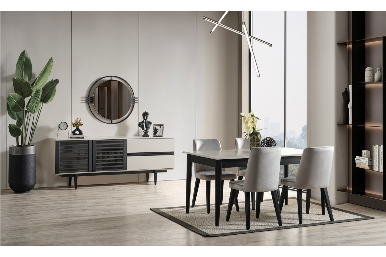 Takım İçeriği 1 Ad Konsol ve Aynası. 1 Ad masa ve  4 sandalye  Olusmaktadır. Resimde Görünen Tv Ünitesi Bench Fiyata Dahil Değildir. İsteğe bağlı ekleme yapılmaktadır  Konsol yerine Tv ünitesi ekleyebilirsiniz .