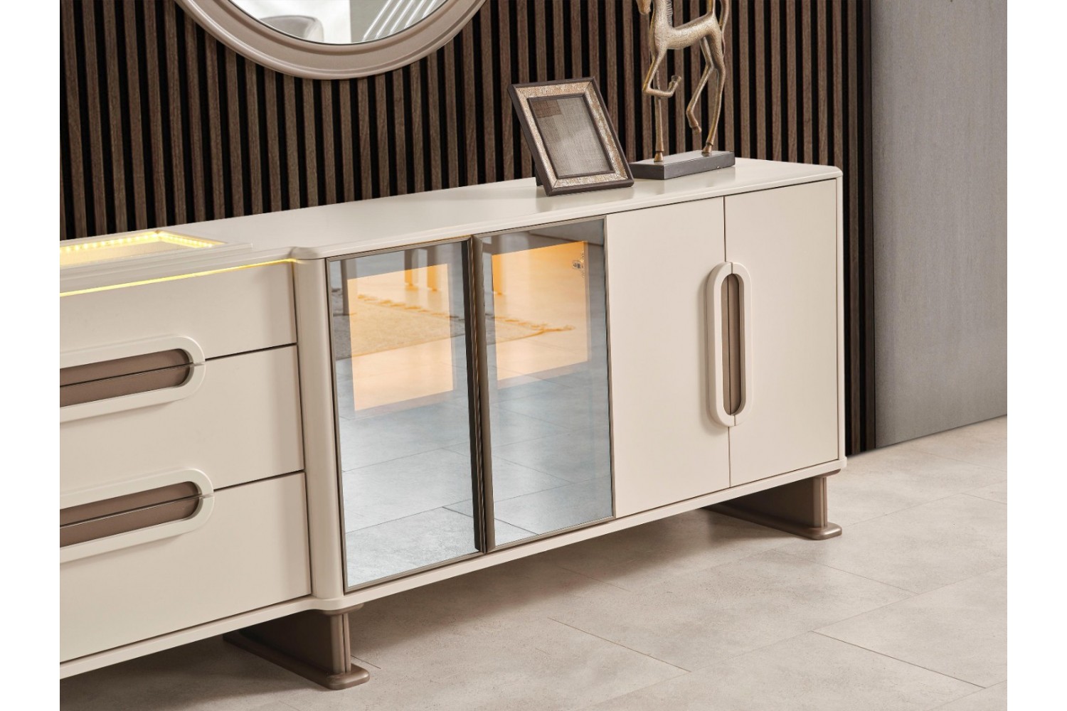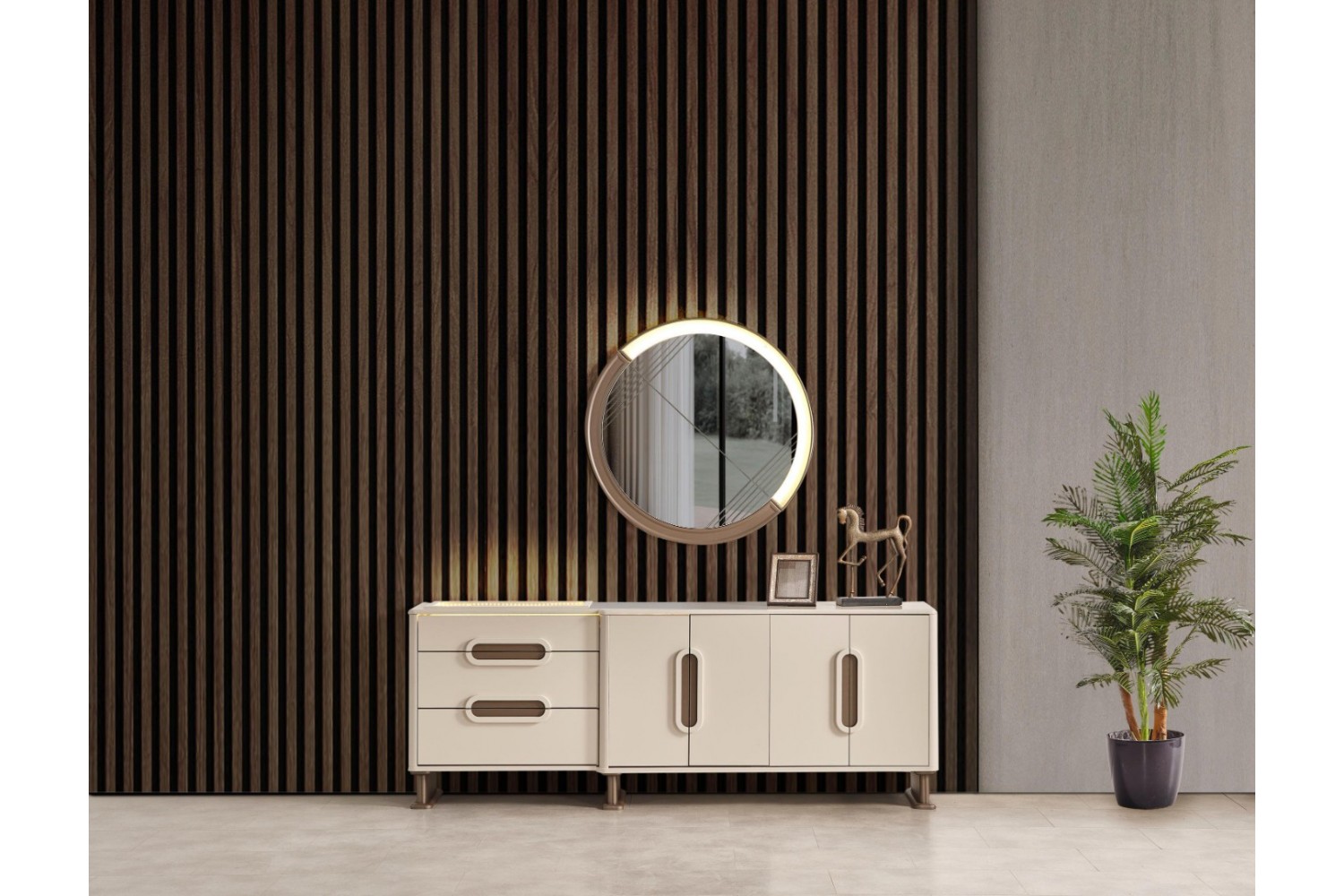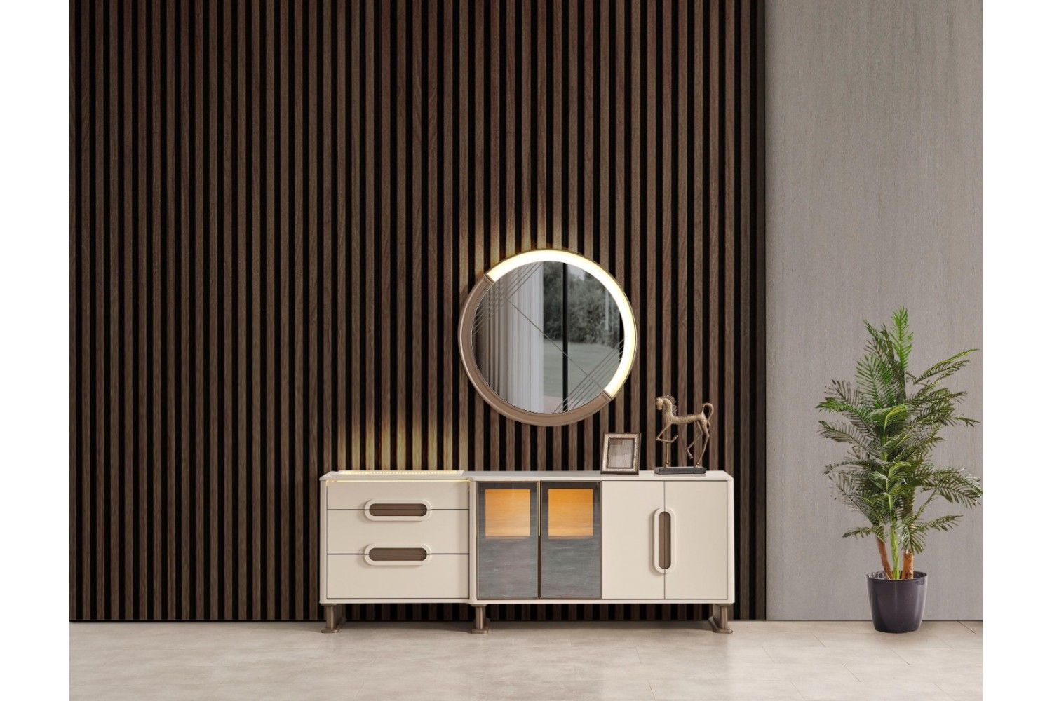 Takım İçeriği 1 Ad Konsol ve Aynası. 1 Ad masa ve  4 sandalye  Olusmaktadır. Resimde Görünen Tv Ünitesi Bench Fiyata Dahil Değildir. İsteğe bağlı ekleme yapılmaktadır  Konsol yerine Tv ünitesi ekleyebilirsiniz .