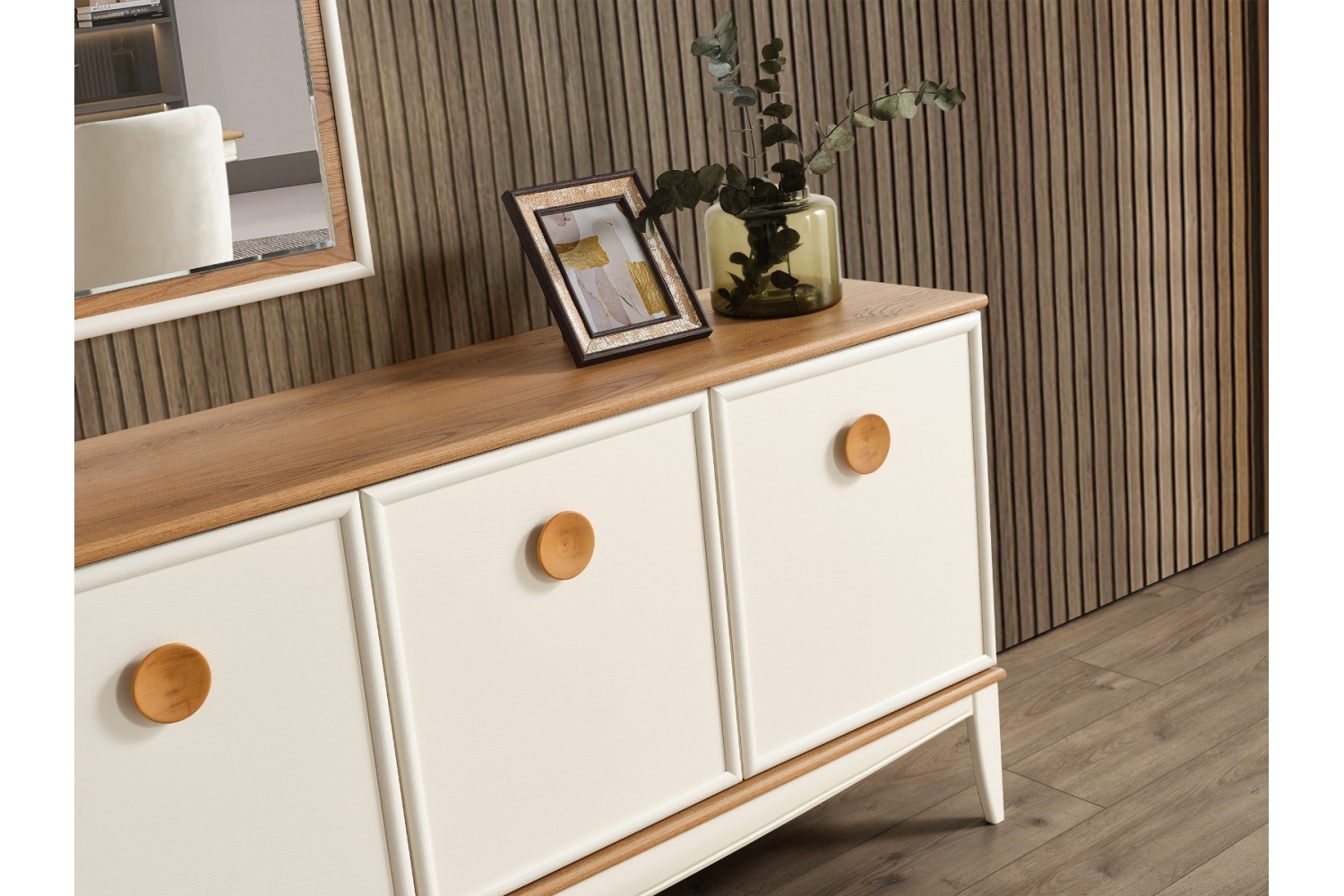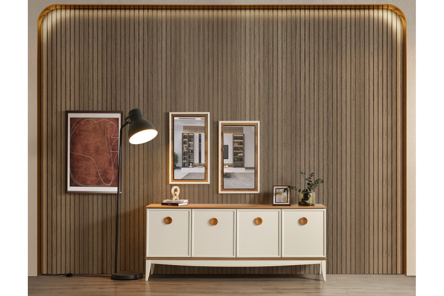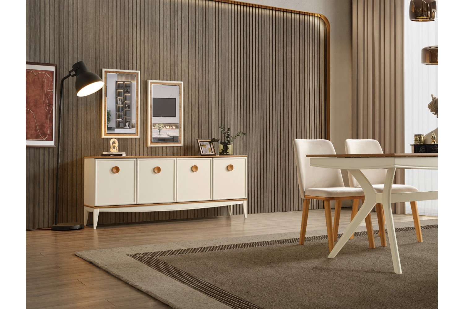 Takım İçeriği 1 Ad Konsol ve Aynası. 1 Ad masa ve  4 sandalyeden   Olusmaktadır. Resimde Görünen Tv Ünitesi ve Bench Fiyata Dahil Değildir. İstege bağlı olarak ekleme yapılabilmektedir Konsol yerine Tv ünitesi eklenebilir .